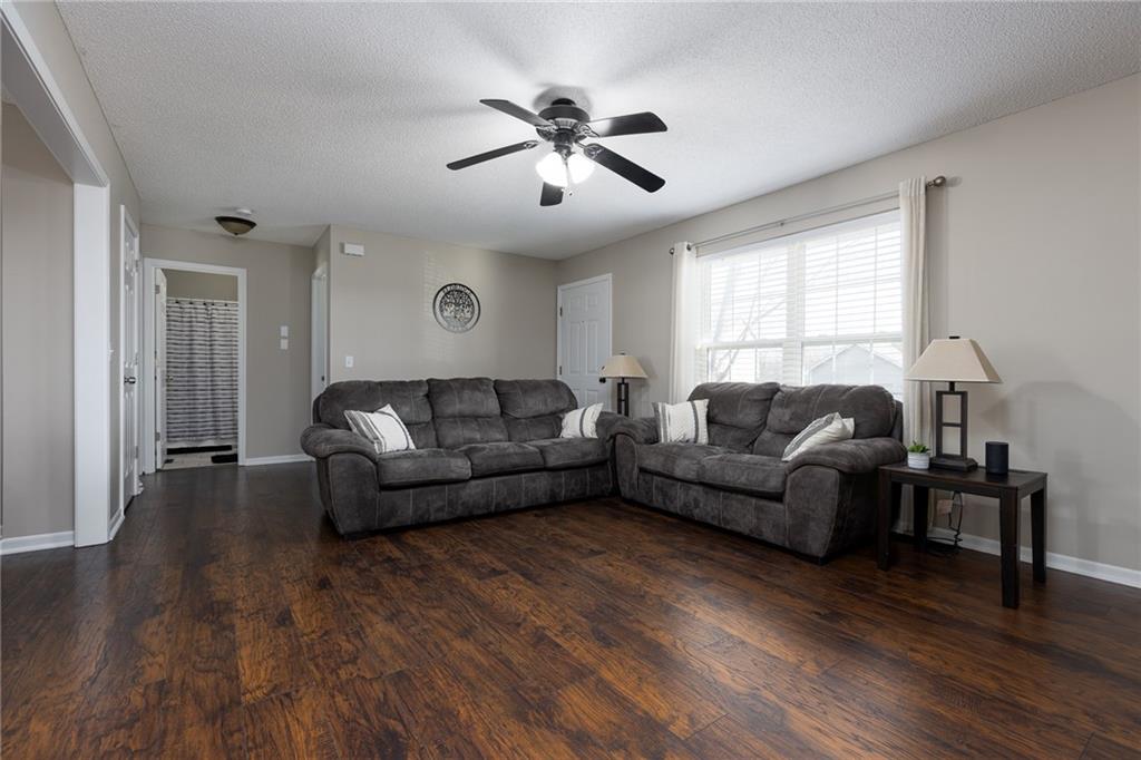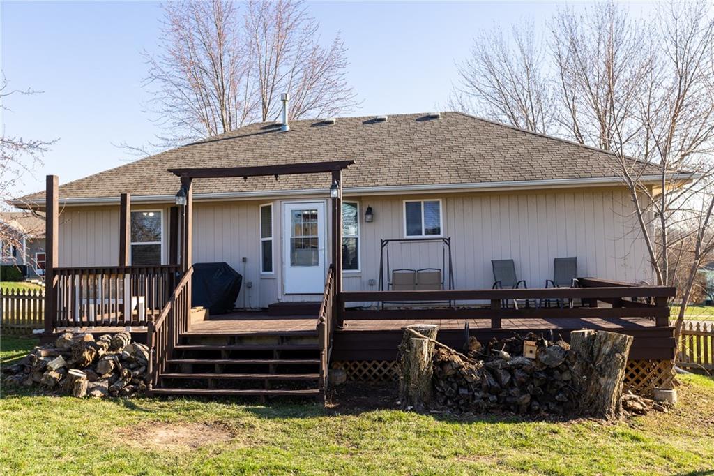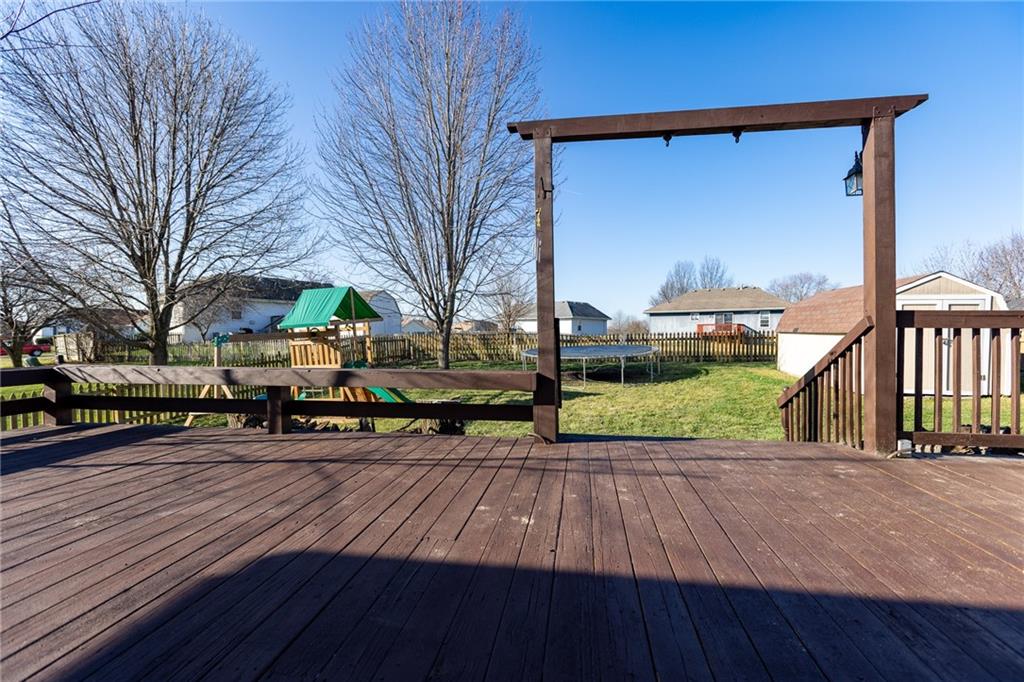 Great raised ranch home in Kearney Schools! Living Room with wood floor. Spacious Kitchen and Dining with wood floor, good counter space and cabinets. All Kitchen appliances stay. Large Main Bedroom with walk in closet and Bath. Two Bedrooms and Bath on opposite side. Finished Rec Room and Half Bath. Big 2 Car Garage with openers. 2 Separate garage doors. Fully fenced back yard with shed and freshly painted large deck. New interior paint, washer & dryer stay.
