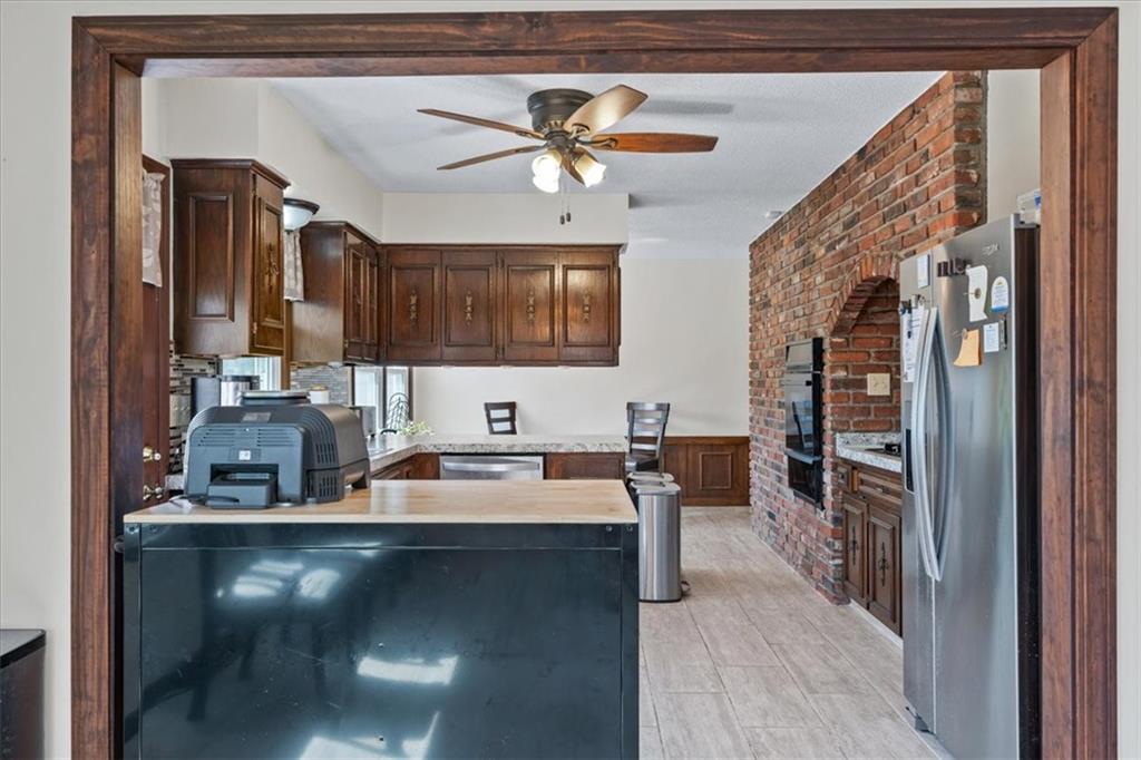 Imagine pulling onto your impressive private driveway and arriving at a home that immediately feels different from the rest. Set on a sprawling corner lot in sought-after Merriam, 10105 W 55th St welcomes you with undeniable curb appeal and the kind of character that simply can’t be replicated. Step inside and you’ll feel the craftsmanship right away. Rich crown molding, raised paneling, and custom hand-crafted woodwork bring warmth and timeless style to every space. Built-ins and clever hidden storage are tucked throughout the home, giving it that satisfying sense that every detail was thoughtfully designed. Enter your kitchen to enjoy a cozy breakfast area on one side and a formal dining space on the other. Picture summer evenings on the large covered deck just off the kitchen. The fully fenced yard offers multiple outdoor entertaining spaces, including a private patio with a fountain and a lush grassy area for gatherings or quiet moments. The primary suite offers its own patio walkout to the covered deck—perfect for morning coffee or unwinding at the end of the day. Head downstairs and you’ll find even more personality and versatility. A beautifully detailed staircase leads to a cozy bench nook framed in brick—an inviting moment of charm before stepping into the lower-level bonus spaces to be used as a sewing/craft room, office, or however you decide...the world is your oyster here! Big-ticket items are already taken care of, so you can move in with peace of mind: newer roof, HVAC, water heater, and double-pane windows all for you to enjoy worry-free. Additional practical features include a workshop with desk and sink, a laundry room with built-ins, an oversized garage, and a lawn-mower closet with exterior access. A unique Merriam home with timeless style, plenty of space, and exceptional indoor-outdoor living—ready for your next chapter.