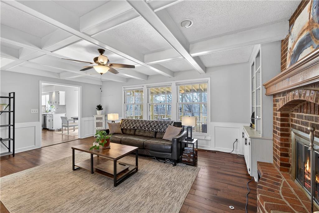 Beautifully updated 2-story in Briargrove offering over 3,500 square feet of finished living space in the highly desirable Shawnee Mission School District. This spacious 4 bedroom, 2 full and 2 half bath home blends classic charm with thoughtful updates throughout. The main level features a bright living room with fireplace flanked with built-in bookshelves, formal dining area, and a beautifully updated kitchen with center island, pantry, and newer appliances that opens to a large breakfast nook. A private main-floor office with pocket doors for added privacy provides the perfect space for working from home. Upstairs you’ll find four generously sized bedrooms including a large primary suite with updated bath featuring double vanities, soaking tub, separate shower, and a large walk-in closet. Secondary bedrooms are well-sized and share an updated hall bath. The finished lower level offers additional living space with a large recreation room, sitting area, half bath, and plenty of storage — ideal for entertaining, a media room, or play space. One of the standout features of this home is the screened-in porch overlooking the private backyard, creating the perfect spot to relax or entertain in every season. Additional highlights include a main-level laundry room, a large 15.8 x 6 mud room with built-ins, oversized 2-car garage, mature trees, and a quiet established neighborhood close to parks, shopping, restaurants, and excellent highway access. This move-in ready home offers space, updates, and an ideal Lenexa location.