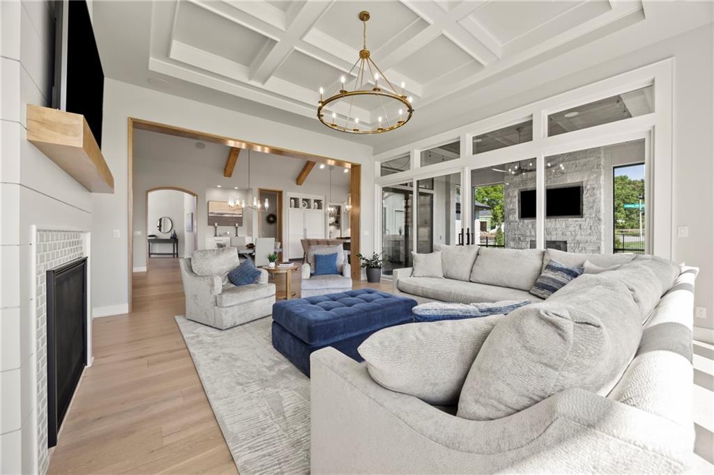 Amazing one and a half story home with a full finished walkout basement in Mills Ranch ready for quick move-in. This nearly new, 3 year old Willis Custom Built home is a stunner with a spacious vaulted main floor living space, impressive curved staircase, arched doorway to the great room, unique 2nd bar, theater room, screened in lanai sun porch, walk in double shower with freestanding tub, huge 4 car split garage with high lift doors, dog wash, pocket office, premium sound system and smart tech package. So many unexpected extras in this home around every corner. This 1.5 Story floor plan features a main floor primary suite with luxurious spa bath with with white quartz and mini tiles. Must see! Upper level offers private spaces with loft, second laundry and two premium bedrooms loaded with extra features and upgraded baths. You'll love the fully finished walkout lower level with LVT flooring, movie room, wet bar and 4th bedroom. This upscale home sits on a corner lot with a side entry four car garage and a front circle drive. Beautiful landscaped and fully fenced unique backyard allows for you to access from the main level and walkout on the side. Move right in to this amazing home located in Mills Ranch with a new neighborhood pool, and easy access to the Johnson County walking trails and quick access to Highway 69. All the luxuries of a new home are already added including premium window coverings, fenced yard, water bottle filler, built in side-by-side refrigerator and premium sound system. Why build when you can move right into this award-winning Willis Custom Home. Blue Valley School District