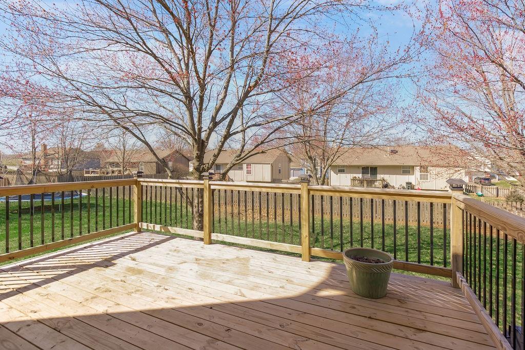 Move-in ready with space to live, entertain, and relax! The main level welcomes you with a formal living room and beautiful luxury vinyl plank flooring flowing throughout the main living areas. The kitchen is a standout with its vaulted ceiling, TONS of cabinets, and center island with quartz counter—perfect for everything from quick breakfasts to hosting friends. Downstairs, the cozy family room features a zero-emission gas log fireplace and convenient half bath, making it an ideal hangout space for movie nights or game days. The spacious primary suite offers a relaxing retreat with a walk-in shower, walk-in closet, and soaker tub. Two additional bedrooms include large closets and share a well-appointed hall bath with tile flooring and a shower-over-tub. Need more space? The finished basement includes a rec room with a walkout to the backyard—perfect for a 4th bedroom, office, or rec room. Step outside to enjoy the large deck and backyard, ideal for entertaining or relaxing on warm evenings. Nestled on a quiet cul-de-sac! The home also features durable Hardi-plank siding, and residents get to enjoy the neighborhood swimming pool—just in time for summer.