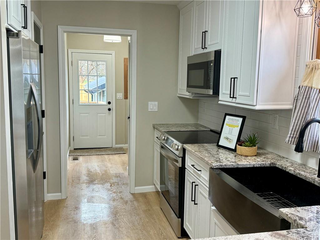 Looking for a country feel while still living within city limits? This spacious 4-bedroom, 2.5-bath home sits on a double lot and offers plenty of room both inside and out. Enjoy relaxing on the new front porch complete with a swing, or entertain on the large party deck with space for a hot tub, BBQ, and gatherings with friends. All decks have been rebuilt, and the backyard features a new privacy fence, garden space, a 10x12 storage shed, and plenty of parking along with a two-car garage. Inside, the home offers fresh finishes throughout, including a beautifully updated kitchen with tall soft-close cabinets, granite countertops, tile backsplash, and updated appliances. The layout includes two living areas, two fireplaces, and a basement wet bar, making it perfect for everyday living or entertaining. Bedrooms are generously sized with great closet space, and the home includes two pantries for additional storage. The basement offers even more flexibility with a non-conforming fifth bedroom that would make a great office, plus a large mechanical room that provides abundant storage. Additional updates include a new roof and guttering, high-efficiency HVAC system, water heater, updated plumbing, vinyl flooring, carpet, and modern finishes throughout. This unique property combines space, updates, and outdoor living in one great package. Schedule your showing today.