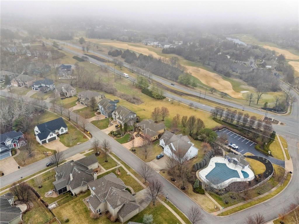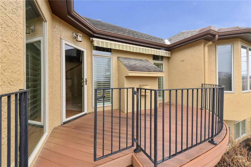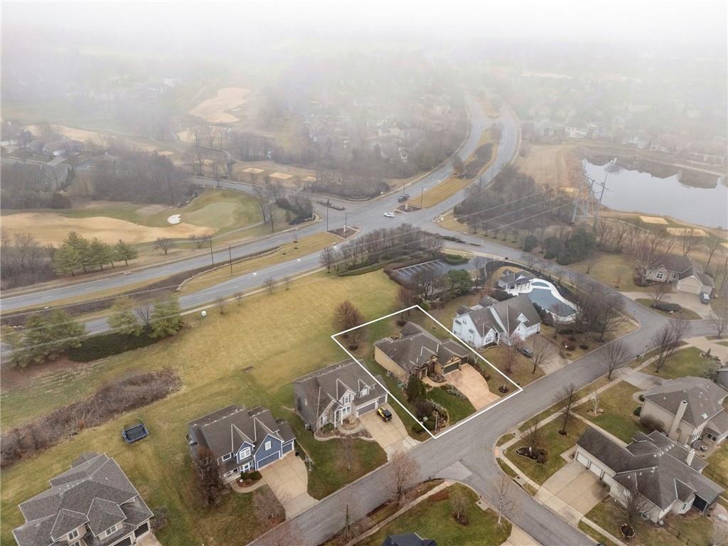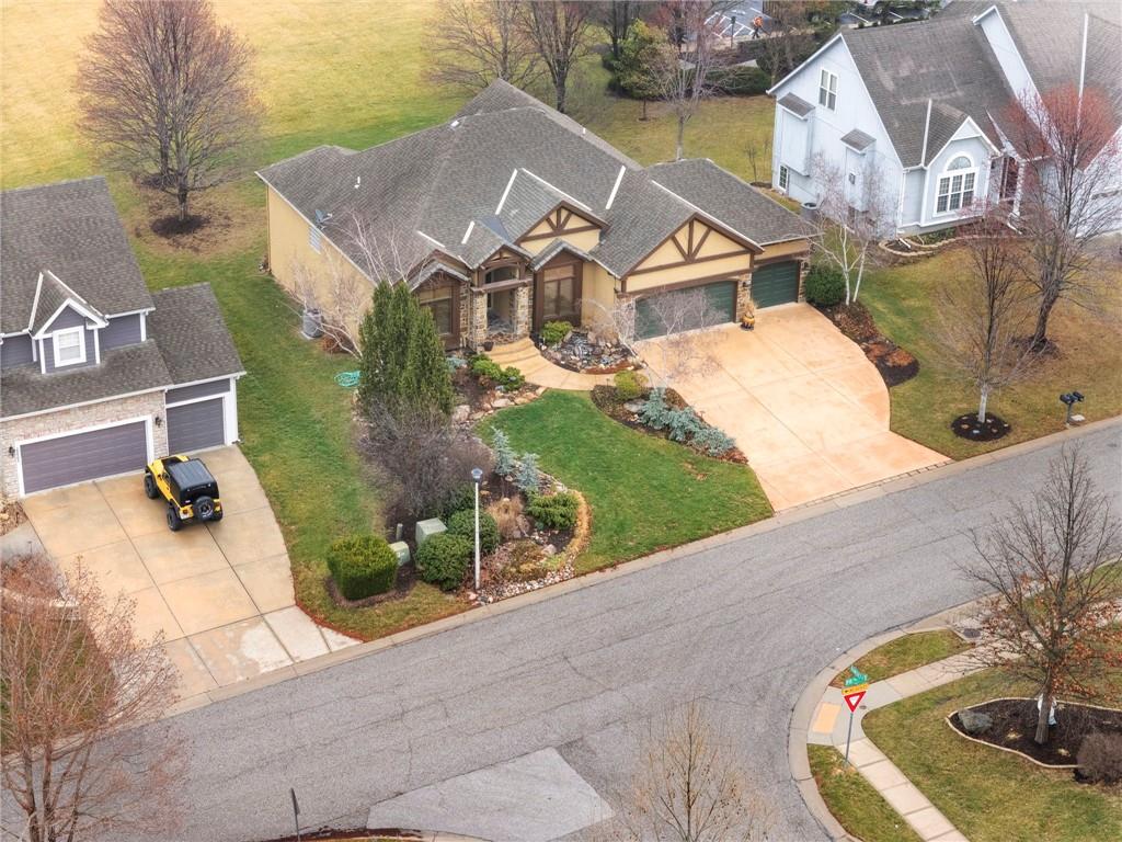 Stunning Custom Reverse 1.5-Story in Highland Crest with Falcon Valley Golf Course Views This beautifully custom designed and built reverse 1.5-story home in sought-after Highland Crest offers privacy, exceptional craftsmanship, and scenic views of Falcon Valley Golf Course. The professionally landscaped lot features mature trees, manicured shrubs, raised garden beds, and a tranquil waterfall water feature. With no neighbors behind, the property backs to open space, creating a peaceful and private outdoor setting. The striking all-stucco exterior with elegant natural stone accents provides outstanding curb appeal. Inside, the thoughtfully designed floor plan showcases rich hardwood floors, exposed wood beams, and tongue-and-groove wood ceilings that add warmth and character throughout the main living spaces. The chef’s kitchen features beautiful stained cabinetry, quartz countertops, stainless steel appliances, a spacious dining area and a large walk-in pantry—perfect for both everyday living and entertaining. A private office provides a quiet work-from-home space. The main-level primary suite offers a relaxing retreat with a large walk-in shower with seamless glass and an expansive walk-in closet with custom built-ins. A convenient half bathroom and main-floor laundry room completes the level. The daylight lower level is ideal for entertaining and recreation, with enough room to add a 4th bedroom and featuring a spacious rec room with luxury vinyl flooring, a dedicated area for a pool table, two additional bedrooms, and a full bathroom. There is also abundant storage space, along with updated High Efficiency HVAC and a High End whole-home water filtration system. Step outside to enjoy the newer composite deck and additional patio overlooking the large, treed backyard that backs to open space. Located within easy walking distance to the neighborhood pool and just minutes from Lenexa City Center, shopping, dining, and highways. highly regarded Olathe Schools