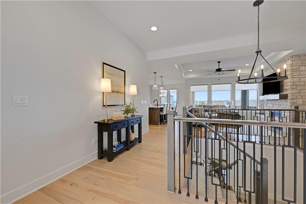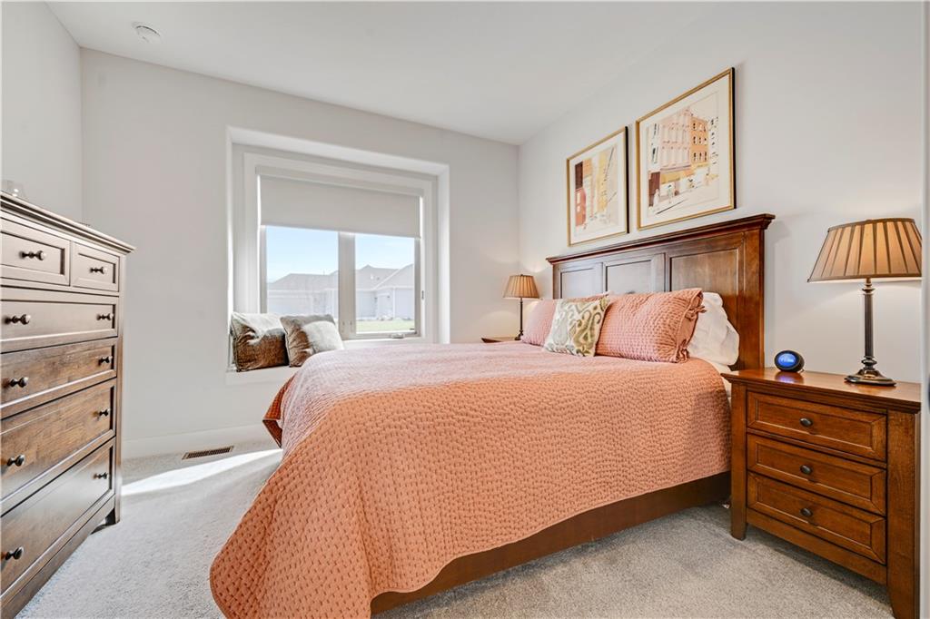 Perfect location, nearly brand new home, finishing touches already done for you! This reverse 1.5 story villa, located in Crestwood Village - a maintenance provided community - features an open concept floor plan. This stunning home has tons of natural light coming through the walls of windows in the great room with fireplace. Warm, wide-plank hardwood floors throughout the great room, dining area, kitchen and mud room. Enjoy cooking in the gorgeous kitchen featuring a center island, custom cabinets, quartz countertops and stainless appliances. You will FALL IN LOVE with the huge, L-shaped, walk-in pantry (including a counter top to host a coffee bar/air fryer) and so much accessible kitchen storage. The private owner's suite includes an ensuite with double vanities, quartz countertops, spacious walk in shower, and a gigantic walk in closet featuring 3-tier/off season storage. Second bedroom/study on the first floor with walk in closet conveniently located adjacent to a full bath. Take the stunning, U-shaped staircase down to the finished, walkout basement, LVP floor with wet bar where you can entertain and enjoy watching the game. Two more bedrooms and full bath are perfect for guests! Abundant storage in the unfinished area of the basement. Nice finishing touch - painted floors in the unfinished storage area. Sellers have installed high-end window treatments that will remain with the home, along with fridge, washer and dryer. Come by to see this beautiful community in a fabulous location. Close to shopping, restaurants, grocery stores, entertainment, medical facilities and walking trail. Enjoy maintenance provided living for $267/month - included is lawn maintenance, snow removal, exterior paint and more! Vibrant community. Cascading views. Exceptional, well-manicured landscaping. Fences allowed at Crestwood Village!