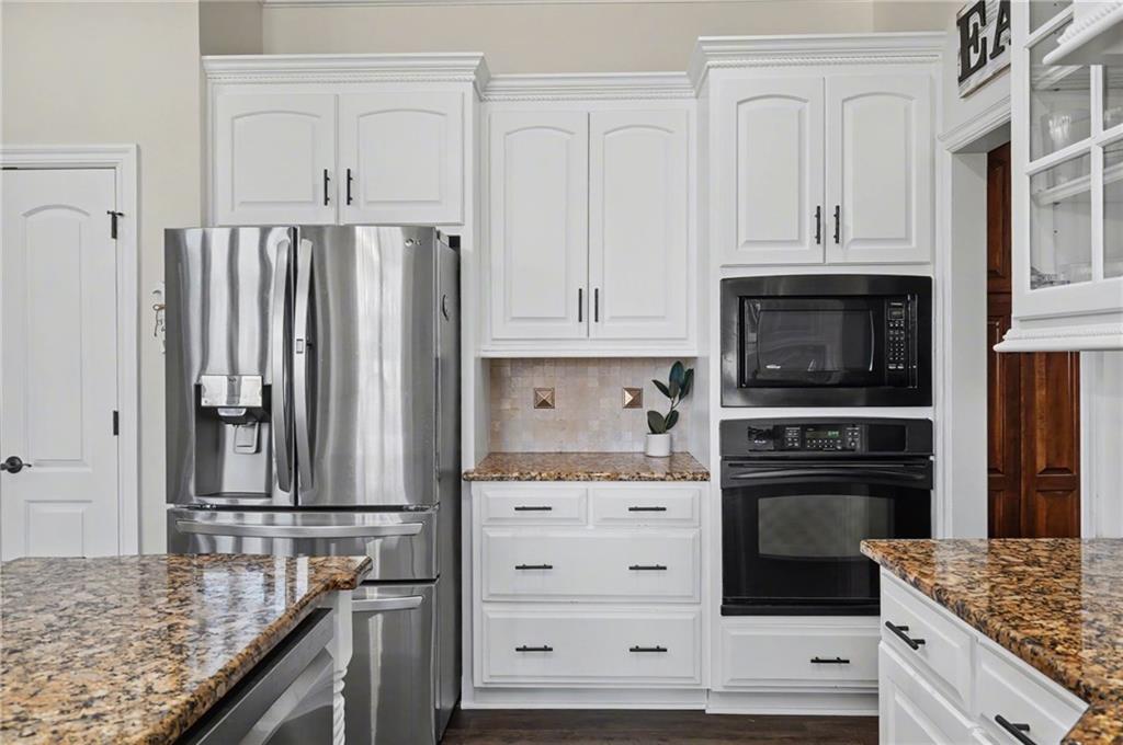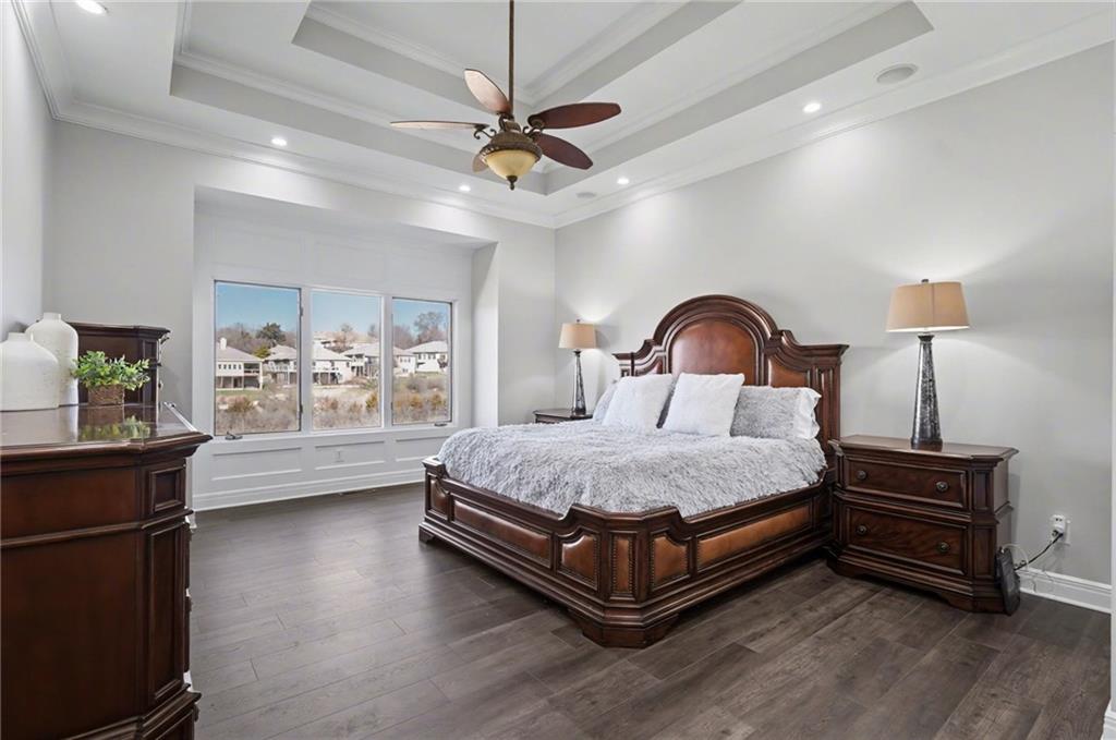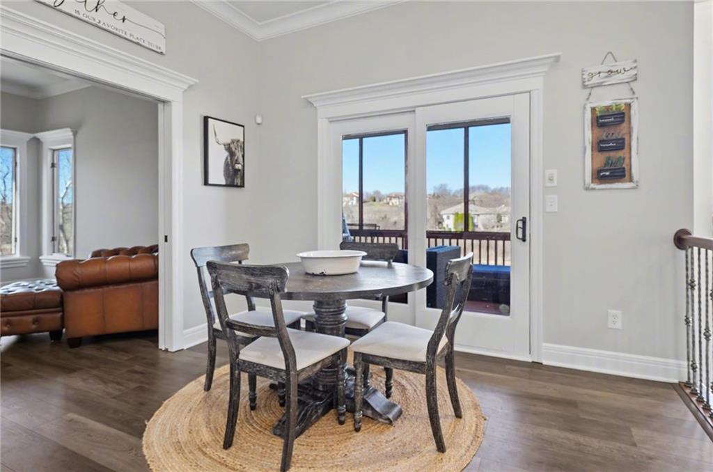 Unique opportunity to own an expertly crafted luxury home located in a quiet neighborhood. Soaring ceilings, high end finishes, 1,380 sq ft of unfinished storage with natural light and windows everywhere. Major expense updating trim & cabinet paint, double HVACs, flooring, lighting, etc. Kitchen has double wall ovens, gas cooktop, a large kitchen island next to a screened in deck overlooking all of the land going down to the lake that the neighbor owns. Formal dining room offers a refined space for entertaining or hosting special holiday gatherings. Guest room on the front and office/3rd bedroom on the back. The full walkout basement has even more living space with 2additional bedrooms and a large second living area. A wet bar complete with a pantry, refrigerator, dishwasher, and microwave perfect for hosting guests or watching movies. Enjoy colorful Kansas sunsets in your back yard with no HOA to answer to.