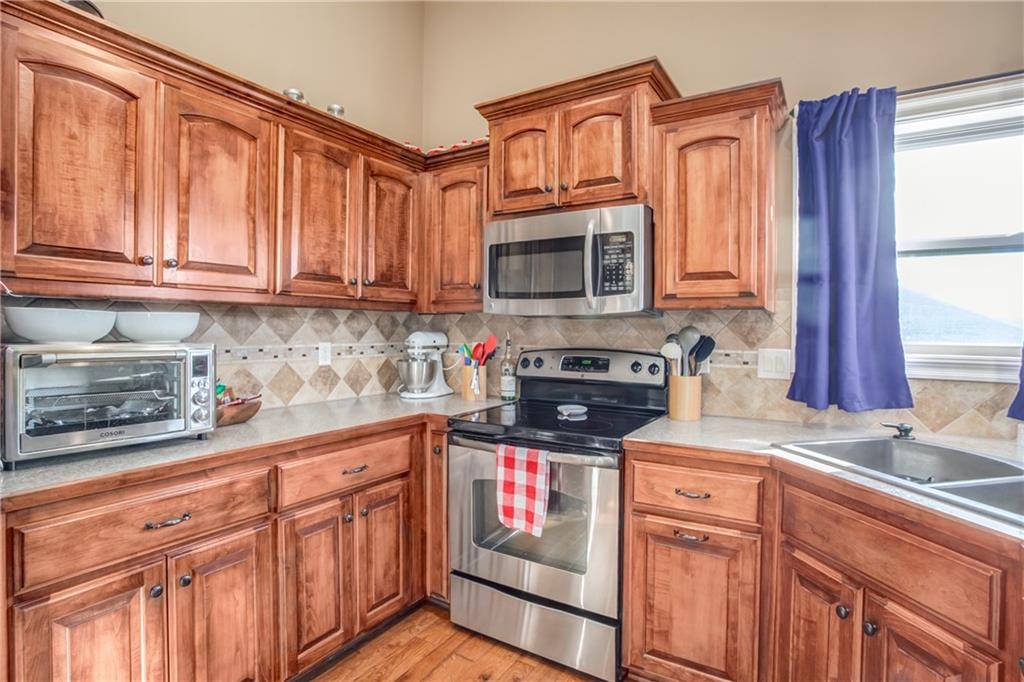 Stop the car and take a look at this beauty! Open floor plan, vaulted ceilings and so much WOW factor in this 3 bedroom, 2.5 bath home. New wood flooring in kitchen and dining. New HVAC and brand new stairs off the deck are just a starting point. Large master suite with a jetted soaking tub and a walk-in closet. Two additional bedrooms and a bath are on the main level. Laundry on the main level is a BONUS. Lower lever family room has an additional half bath and walks out to a serene back yard. Oversized covered patio and covered porch make this ideal for outdoor entertaining or just a quiet evening enjoying the space. Three car OVERSIZED garage accommodates a full size truck with plenty of additional room to walk around. (Seller parks a full sized Dodge Ram inside nightly.) Buyer or buyer's agent to verify sq ft, taxes and school information.
