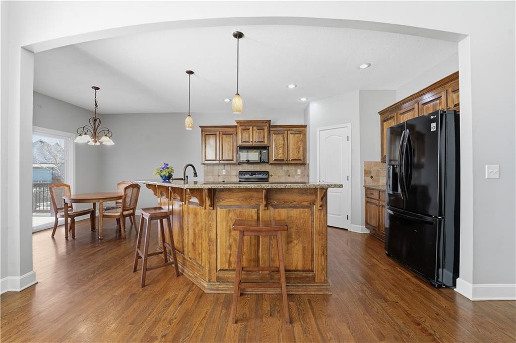 Do not miss the opportunity to see this incredible true ranch! Roof 3.5 years old, HVAC 2.5 years old, Water Heater 3 years old. This home is a Kansas City MO address in Lee’s Summit School District. Beautiful finishes include all Hardwood floors on the main floor, Plantation Shutters Throughout the Main Level, Soaring Ceilings, Primary Suite with Extra Large Walk In and Bath, Island Kitchen with Custom Cabinetry and Walk In Pantry, Expansive Family Room with Stunning Bar with Wine Fridge, Dishwasher, Moving the Party Outside will be just as fun in any weather with its Covered Deck, Fenced Yard and Beautiful Stamped and Stained Patio. Home includes Main Refrigerator, Lower-level refrigerator and wine refrigerator and main level washer and dryer.