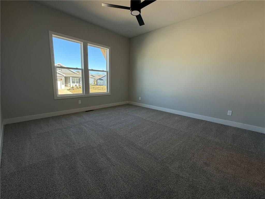 Ready mid-April and located in the Maintenance Provided section of Kensington Farms, this popular Sonoma Reverse 1.5-story floorplan is currently in our Quality Assurance stage—pardon our dust as finishing touches are completed! The thoughtfully designed main level features two primary bedrooms, each with a private ensuite, making it perfect for guests or multigenerational living. The main primary suite includes a zero-entry shower, spacious walk-in closet with custom shelving and built-in dresser and convenient access to the laundry room. The heart of the home is the beautifully designed kitchen with stained cabinets, offering abundant storage and counter space and flowing seamlessly into the dining area and great room. Here you’ll find 10-foot ceilings, fireplace, and a stained coffered ceiling. Durable upgraded laminate flooring (Revwood) runs throughout the main level for both style and easy maintenance. Step outside to enjoy the oversized covered deck overlooking the backyard—perfect for relaxing or entertaining. The finished lower level expands your living space with an oversized rec room, a wall wet bar, two generous bedrooms, a full bath, and 500+ sq. ft. of unfinished space ideal for a gym, workshop, or additional storage. Additional upgrades include: High-efficiency furnace, GE appliances, under-cabinet lighting, Low-maintenance decking, garage door openers included. BUY WITH PEACE OF MIND, the convenience of new construction backed by a 2-10 Home Warranty, offering 10 year structural, 2 year mechanical, 1 year workmanship Located in the maintenance-provided section of Kensington Farms, homeowners enjoy worry-free living that include weekly lawn mowing, a 6-step fertilizer program, annual grub treatment, spring re-mulch and cleanup, and snow removal for 2"+, all for $160/month. Neighborhood amenities include a pool, playground, and greenspace, with easy access to Downtown Lee’s Summit, Summit Fair, dining, and shopping.