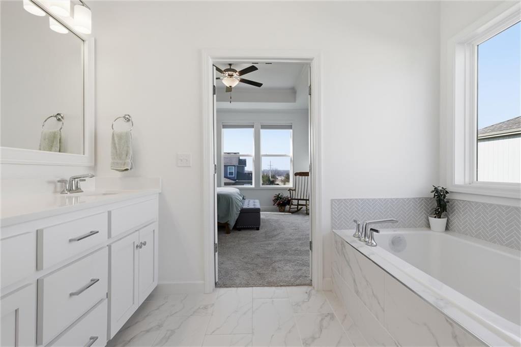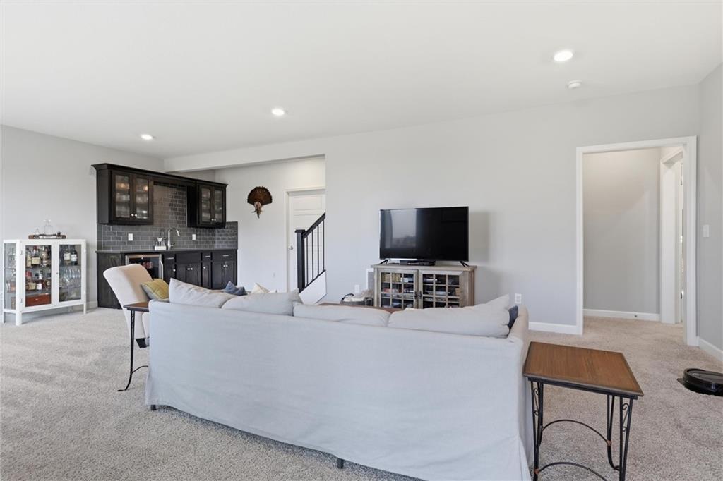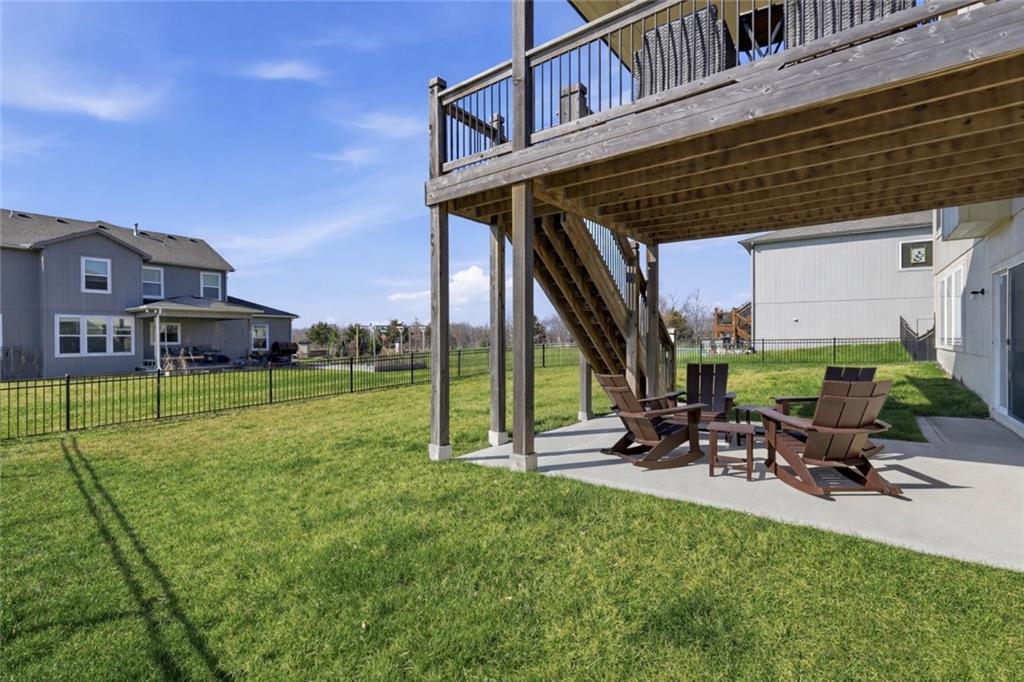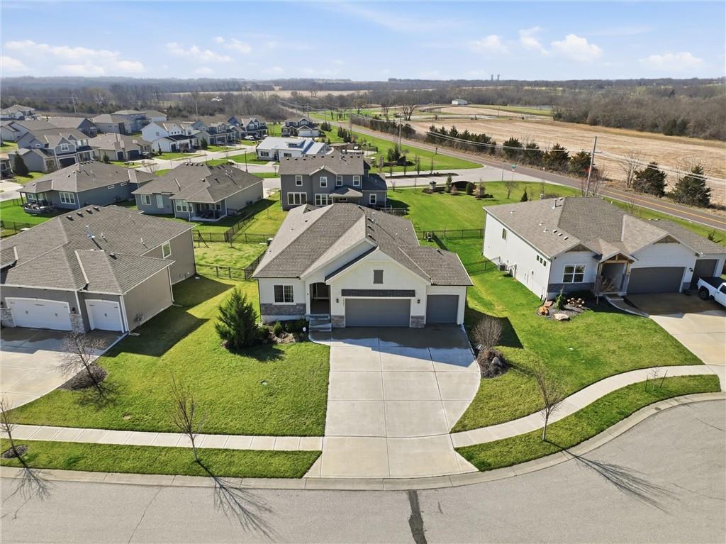 Better than new, this meticulously maintained reverse 1.5-story home by Summit Homes sits on a quiet cul-de-sac and an incredible walk-out lot in the coveted Southpointe neighborhood in Overland Park. Offering over 2,600 square feet of like-new living space, this home features 4 bedrooms and 3 full bathrooms with thoughtful upgrades throughout. The main level showcases an open-concept layout filled with natural light, a bright white kitchen with updated appliances and fixtures, and a spacious living area that flows seamlessly to the covered deck — perfect for relaxing or entertaining. The large primary suite offers a beautifully appointed en suite bathroom and an oversized walk-in closet. The finished walk-out lower level is built for entertaining with an impressive wet bar, spacious living area, and direct access to a covered patio and fully fenced backyard. You’ll also find an unbelievable amount of basement storage space — truly something you have to see in person to appreciate. Generous bedroom sizes, large closets, and beautifully tiled bathrooms add to the home's appeal. Located in the highly sought-after Spring Hill School District with convenient access to major highways, this home also enjoys the fantastic amenities of the Southpointe community, including a neighborhood pool, clubhouse, and playground.
