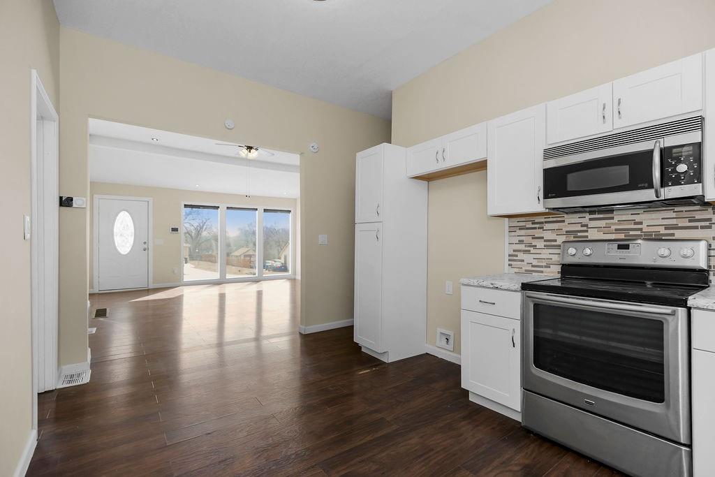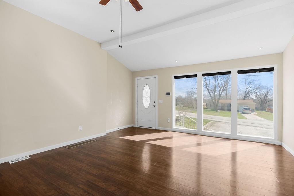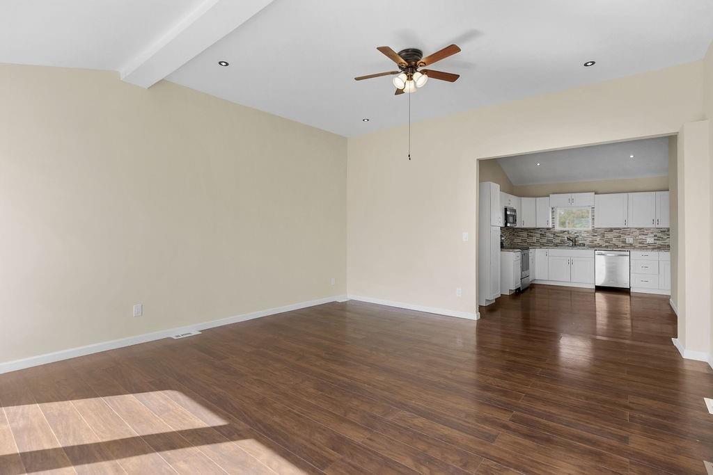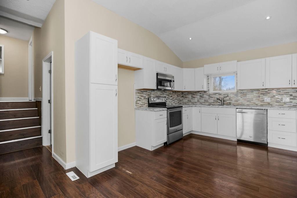 Welcome home to this bright and beautifully refreshed split-level offering style, space, and natural light throughout. The updated kitchen features crisp white cabinetry, stainless steel appliances, modern tile backsplash, and generous counter space, all opening seamlessly to the main living area for easy everyday living and entertaining. The living room showcases soaring ceilings and a wall of windows that fills the space with natural light, creating an open and airy feel rarely found at this price point. Recent improvements throughout the home include new flooring, fresh interior paint, repaired wall finishes, updated kitchen lighting, and new carpet in the primary bedroom, giving the home a clean and move-in ready feel. The primary bathroom has been refreshed with regrouted tile, and additional behind-the-scenes updates include installation of a proper refrigerator water line with a separate shut-off valve. Outside, the spacious yard and deck provide the perfect setting for relaxing evenings or entertaining. With a one-car garage, functional layout, and convenient access to nearby shopping, dining, and highways, this home offers both comfort and practicality. Come see the charm and possibilities for yourself!