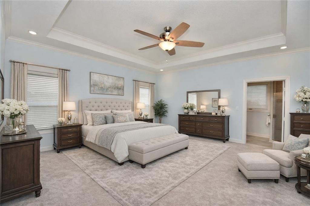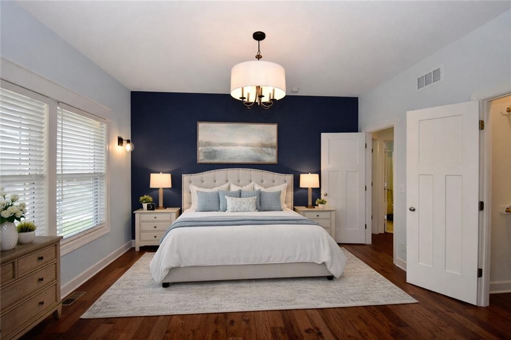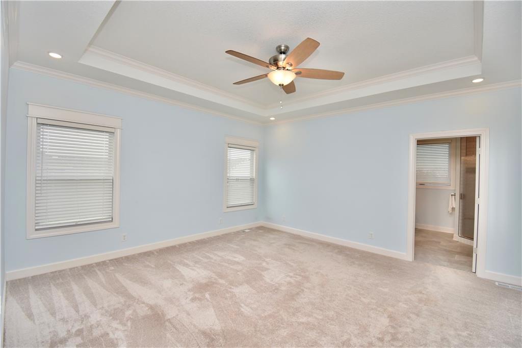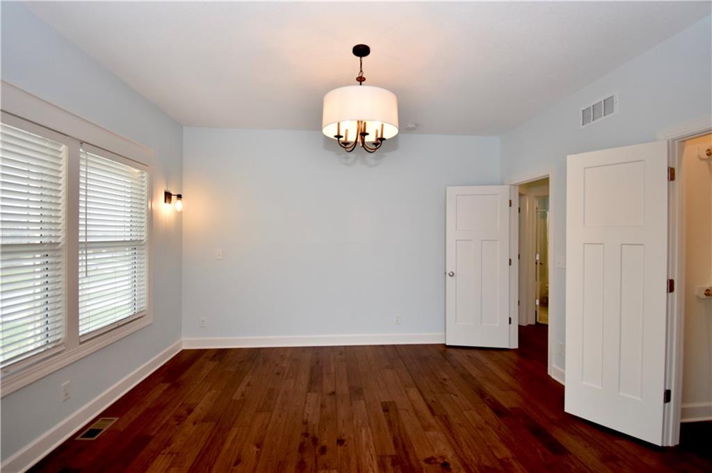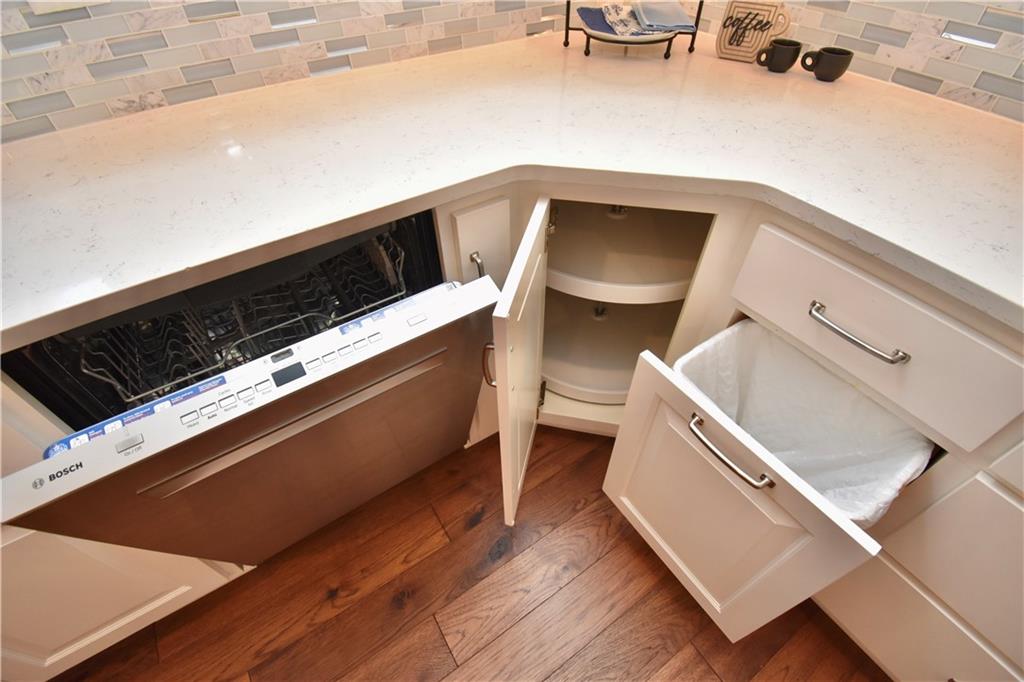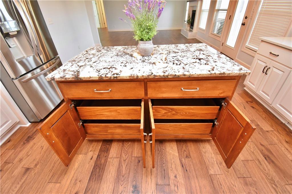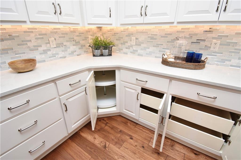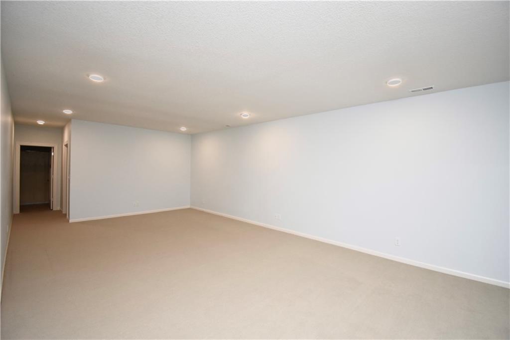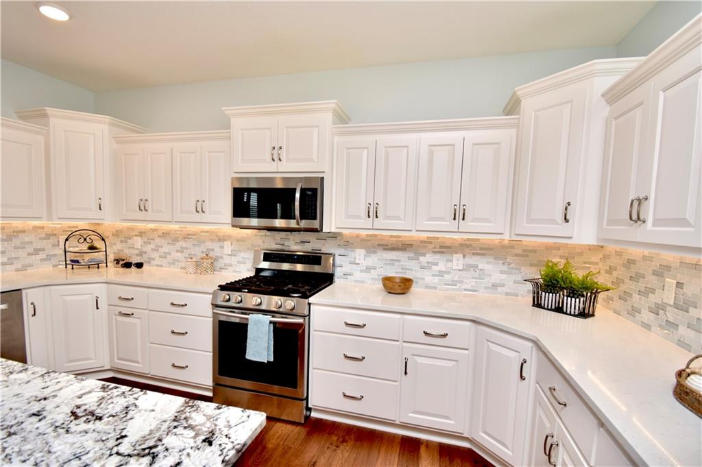 Beautiful custom-built reverse ranch with an open floor plan, meticulously maintained by the original owner. You’ll know this home is special when entering through the beautiful front door! The main level offers over 2,000 sq ft with three bedrooms on the main floor. Attractive landscaping, retaining wall, and welcoming front porch provide great curb appeal. Inside, you’ll find beautiful wood flooring throughout the living room, kitchen, dining area, entry, and third bedroom. The third bedroom features wide French doors and was previously used as a piano room for a baby grand, and closet. The kitchen is a standout with granite countertops, an abundance of painted cabinetry, pull outs, w/4 lazy susan spindals, gas stove, stainless steel appliances, large walk-in pantry, spacious laundry room w/sink and built-ins, and mud area. The living room features a fireplace, built-in shelving, and plenty of space for flexible furniture arrangement. The primary suite includes a large walk-in tiled shower with seat, tiled flooring, double vanity, and walk-in closet. The second full bath offers tiled flooring and natural light from a window. The finished lower level features a huge recreation room with a lighted play nook area, two large bedrooms with oversized closets, and a full tiled bathroom. There is also plenty of unfinished space, including an excavated storage area beneath the front porch. Additional highlights include upgraded carpet on both the main and lower levels, a screened-in porch off the kitchen, upgraded lighting package, and taller ceilings in garage and one side tandem with a side service door and sidewalk to the front yard. The lot offers nice spacing between neighboring homes with views acreage. Seller meticulously took care of this home, truly better than new! Conveniently located near Lawson Lake, parks, and a golf course!