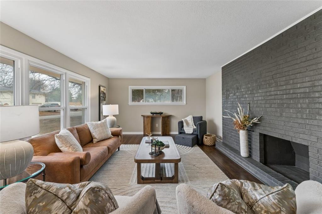 Beautifully remodeled 5 bedroom, 2.5 bath home offering over 3,500 finished square feet of living space. The main level features refinished hardwood floors, a spacious living area with a striking brick fireplace, and an open layout that flows into the fully updated kitchen with quartz countertops, custom cabinetry, stainless steel appliances, and subway tile backsplash. Sliding doors lead to a deck overlooking the backyard, perfect for relaxing or entertaining. The finished lower level provides over 1,400 additional square feet of flexible living space ideal for a family room, office, or guest area. Move-in ready with modern updates throughout and conveniently located near shopping, dining, and major highways.