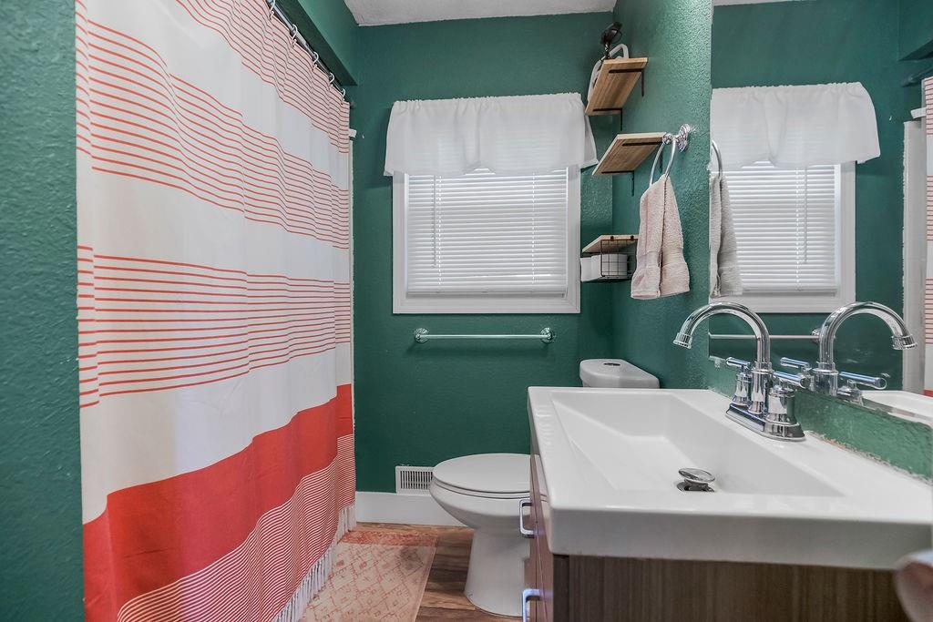 Welcome to your private retreat just minutes from city conveniences! Nestled on over an acre, this charming home offers spacious one-level living with thoughtful updates and room to grow. Major improvements have already been taken care of—the roof, exterior siding, and entry doors are all just a year old! Step inside to a warm, inviting family room with durable luxury vinyl plank flooring and easy backyard access—perfect for entertaining or relaxing outdoors. The bright white kitchen is a dream for any home chef, featuring abundant cabinet space, a gas range with hood, a massive industrial sink, built-ins, and a convenient pantry. Nearby, the large formal dining room makes hosting gatherings effortless. The primary suite offers comfort and privacy with two closets and a private bath with tile and a walk-in shower. On the opposite side of the home, you’ll find three additional bedrooms with generous closets, plus an updated hall bath with a shower/tub combo. Convenient laundry near the bedrooms keeps daily routines simple. This bedroom with brand new carpet! Need extra storage or workspace? The large walk-up basement offers incredible potential a workshop or future expansion. Outside, enjoy a huge patio, long driveway, and multi-car carport with plenty of room for vehicles and outdoor equipment. A storage shed and partial fencing add even more functionality. Peaceful acreage living with easy access to nearby amenities—this property truly offers the best of both worlds.
