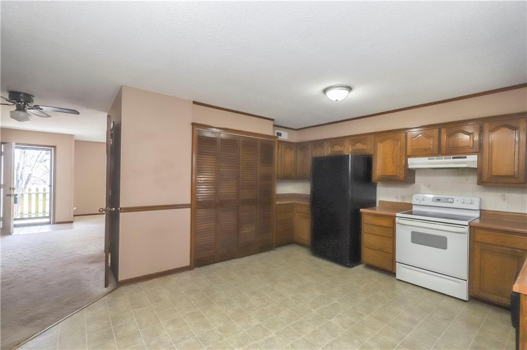 Spacious and full of value, this 3-bedroom, 2-bath home with an oversized 2-car garage is one you won’t want to miss. The large eat-in kitchen offers abundant cabinetry, a pantry, and a sliding door that opens to the deck—perfect for grilling or outdoor dining. All appliances are included. The inviting living room features built-ins and a charming bay window, while newer blinds add a fresh touch throughout. All bedrooms are generously sized, and the convenient bedroom-level laundry room includes a built-in ironing board. Hobbyists will love the deep garage with workshop tables, cabinets, exhaust fans and a utility sink. The utility room provides an additional workspace. A basement storm shelter adds peace of mind. Other highlights include 200-amp electrical service, a maintenance-free exterior, and a fenced backyard complete with a shed and playhouse. Enjoy peaceful views of the neighbor’s pond from the front porch. A brand-new roof will be installed in Spring 2026. Located near Hwy 7 with quick access to parks, schools, a golf course, and more—this home offers comfort, convenience, and room to grow.