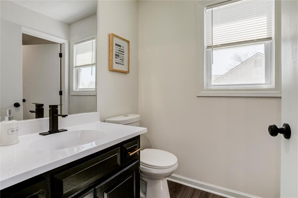 Welcome to this updated 2-story home in Bonner Springs offering a functional layout, natural light, and flexible living spaces. The main level features a spacious living room with a beautiful stone fireplace and built-in shelving, creating a warm and inviting gathering space. The open kitchen showcases vaulted ceilings, ample cabinet storage, built-in desk, and great window light, with easy access to the newly repaired and painted back deck—perfect for outdoor dining or entertaining. A separate dining area sits just off the entry, and the main-level laundry adds everyday convenience. Recent updates include fresh interior paint, knock down ceilings, new carpet in living room and primary bedroom, luxury vinyl plank flooring, new remote control LED ceiling fans, and new LED can lights, giving the home a clean, modern feel. Upstairs, the primary suite features a tray ceiling, double vanity, soaking tub, separate shower, and skylight for additional natural light. Three additional bedrooms and a full bath complete the upper level. The unfinished lower level with an egress window provides flexible space to make your own. Step outside to the elevated deck overlooking a spacious yard with plenty of room for your outdoor needs. NEW roof and gutters-2025. New siding and windows installed in 2018. Additional highlights include a two-car attached garage with sandwich panel insulated garage doors, neutral interior palette, and convenient access to nearby amenities. *Since the original list date, the seller has painted the garage doors, added new exterior lighting in front, painted the shed, and added a beautiful decorative tile to the front of the jetted tub. Located near parks, retail, restaurants, and with easy highway access via K-7 to I-70 and the greater Kansas City area. This property offers space, updates, and a great location—ready for its next owner to call home!
