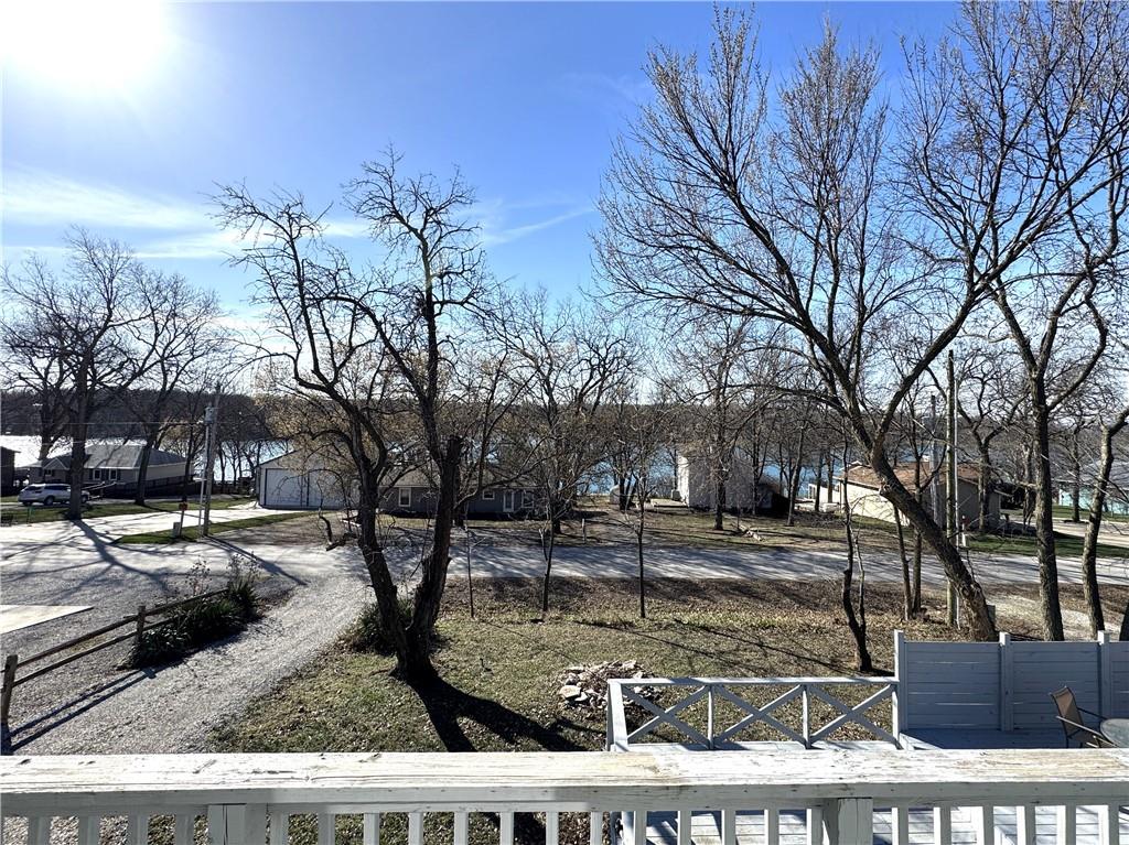 Enjoy lake views with this 1st tier property in Linn Valley Lakes. Plenty of outdoor living space with the enormous deck! A top to bottom rehab was completed in 2019 and the home still looks fresh and new. An oversized 24 x 20 garage with concrete floors and electricity is tucked behind the home! Open floorplan on the main floor has lots of sunlight and great views towards trees and the main lake. There is one bedroom and a bathroom on the main floor. Upstairs, the Primary bedroom is huge and has a private martini deck with views of the lake. A 3rd bedroom, 2nd full bath and a bonus loft area are also located on the 2nd floor. The fenced back yard provides a nice area for pets. This great property is located on a paved road and is connected to public sewer and water lines. The clubhouse, pool and sand beach are a 1/2 block away and the boat ramp for launching your boat or jet ski is just down the street.