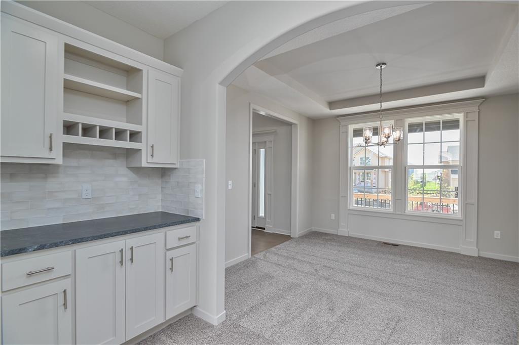 This stunning 2-story Harlow 5 home offers 5 bedrooms, 4 baths, and a spacious 3-car garage in the highly sought-after Prairie Farms community. From the moment you enter, you’ll be impressed by the beautiful turned staircase and gleaming hardwood floors. The formal dining room features built-in cabinetry on both sides and flows seamlessly into a bright, open great room with a cozy fireplace and abundant natural light. The adjacent dining area and chef’s kitchen are an entertainer’s dream—highlighted by hardwood floors, granite countertops, a large center island, apron-front sink, painted custom cabinets with soft-close doors and drawers, upgraded hardware, stainless steel appliances, built-in microwave, and a generous walk-in pantry. A main-level bedroom with a closet offers flexibility as a guest suite, office, playroom, craft space, or more. Upstairs, the luxurious owner’s suite boasts a spa-like bathroom with double granite vanities, tile floors, a free-standing soaking tub, and a walk-in tiled shower. A spacious walk-in closet connects directly to the conveniently located laundry room. Two secondary bedrooms share a Jack & Jill bath, each with its own private vanity. A fourth upstairs bedroom features its own private bath and walk-in closet. Additional highlights include a huge unfinished basement with abundant storage potential, an in-ground sprinkler system, and more. Community amenities include a large swimming pool, cabana, playground, and walking trails. Plus, Prairie Farms is adjacent to the newly renovated Lake Olathe, offering paddleboarding, fishing, hiking, and more—making this a perfect place to call home!