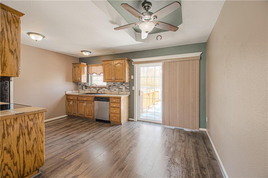 Cute split entry floor plan that offers a finished family room in the lower level or use it as a second owners suite! A fireplace in the great room, to use in those colder days, carpet throughout in the family room and bedrooms. Step out onto the deck and enjoy your new spacious fenced yard. The lower level carpet will be replaced along with the garage entry by the stairs. Lower level laundry and family room, office or use as a second owners suite.