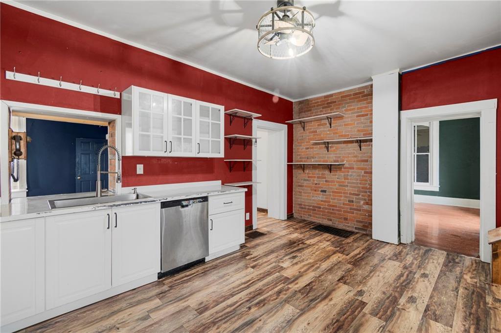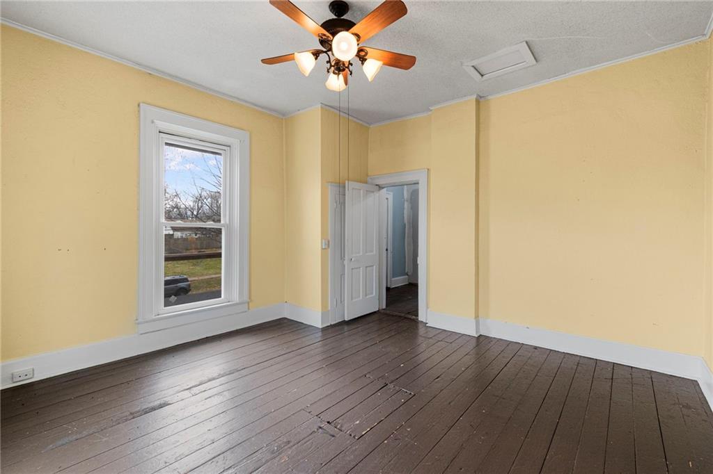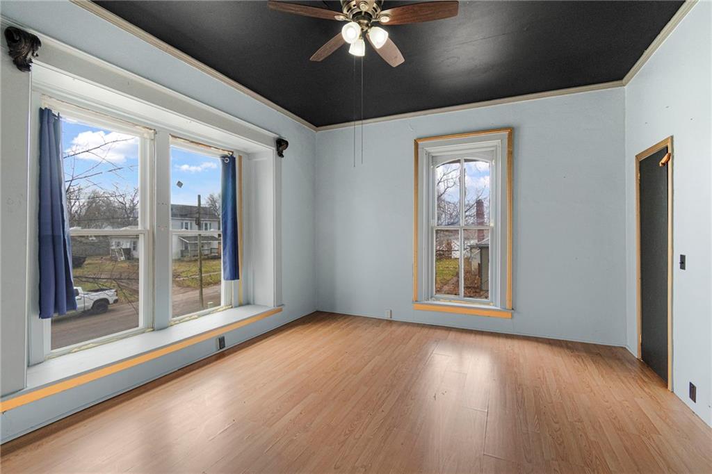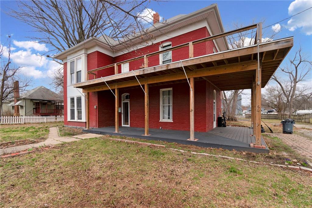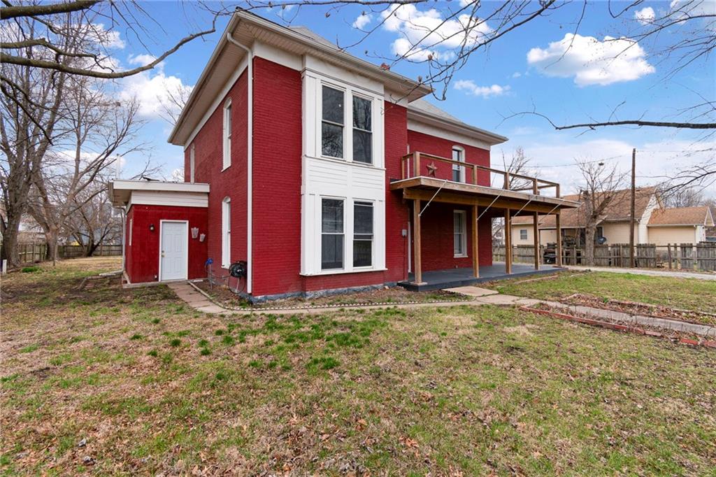 CHARMING HISTORIC HOME FULL OF CHARACTER! Classic residence showcases the craftsmanship of a bygone era and now offers a wonderful opportunity to update and make it your own. Inviting covered wraparound front porch and balcony! Inside, soaring 10-foot ceilings and a stunning hand-carved staircase create a warm and welcoming first impression. Main level features multiple living spaces ideal for everyday living and entertaining, along with a convenient main-floor laundry. Upstairs find three spacious bedrooms and a full bath, plus access to a spacious balcony overlooking the wraparound porch—an ideal spot to relax. Large backyard includes a privacy fence and deck providing endless opportunities for time outdoors. Built with impressive two-foot-thick solid brick walls, this home offers timeless character and solid construction. Bring your vision and enjoy the charm and history this special home has to offer--WELCOME HOME!