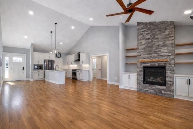 Searching for Main Floor Living in a tranquil gated neighborhood? This nearly new ranch (under 2 years old) offers an open floorplan with all 3 bedrooms on the main level. ***Some images are shown without furnishings to provide a clean, move-in ready perspective--making it easier for buyers to visualize how their own style fits perfectly here.*** Located in a desirable community where French Countryside charm meets modern luxury, this home blends style, quality, and thoughtful upgrades throughout. •3 Bedrooms | 2.5 Baths •White kitchen cabinets with granite countertops •Smart home features – control oven, dishwasher & garage doors from your phone •Vaulted ceilings in living room, kitchen & primary suite •Floor-to-ceiling stone fireplace with multi-level TV mount •Covered patio overlooking fenced yard The full unfinished lower level is the blank canvas buyers love. With two egress windows and a half bath already in place, you could easily: •Add a 4th & 5th bedroom •Create a private office or hobby workshop •Still have plenty of storage Located in the rapidly growing Raymore area, this home offers both beauty and function. Additional Notes •List of items available for purchase outside the sales price is included in supplements •Last three photos are AI renderings showing potential lower-level finishing ideas