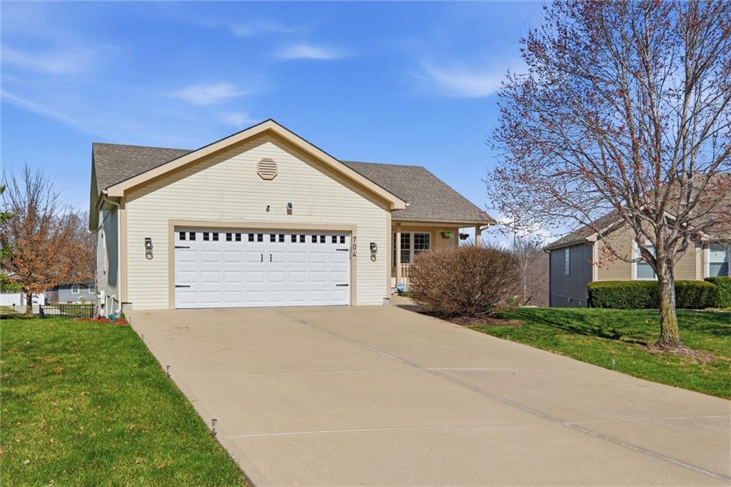 Welcome to this beautiful home in the desirable Highland Pointe subdivision! This very well-maintained property offers spacious living with an inviting floor plan perfect for both everyday living and entertaining. The main level features a bright living area that flows seamlessly into the kitchen and dining space, creating an open and comfortable atmosphere. The kitchen has pantry, granite, island, and refrigerator stays! Living room with fireplace! The home offers generously sized bedrooms, including a relaxing primary suite with a private bath with dual sinks, shower and ample closet space. Main level laundry room too! The finished walk out basement has family room, storage, and full bathroom. Step outside to enjoy the backyard with wrought iron fence, repainted deck, and sprinkler system, ideal for outdoor gatherings, gardening, or simply relaxing. Conveniently located with easy access to Lansing and Leavenworth amenities, shopping, dining, VA hospital, Base, and commuter routes, this home offers the perfect combination of comfort and location. Extra features include garage coating, new garage door, new disposal, new HVAC, new water heater, new paint, newer washer and dryer stay!