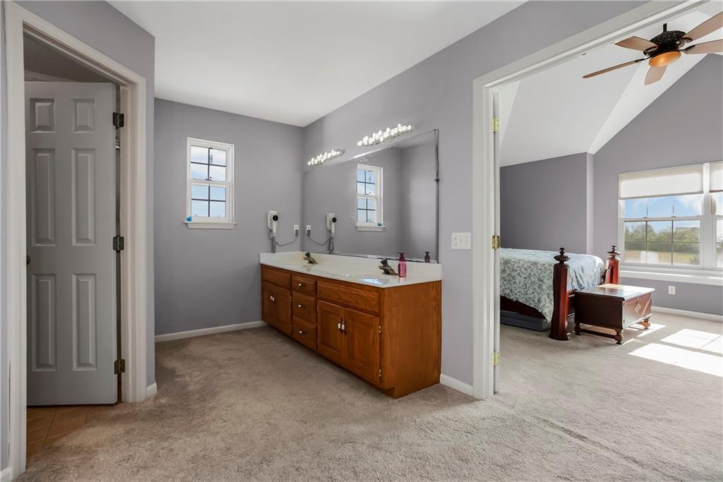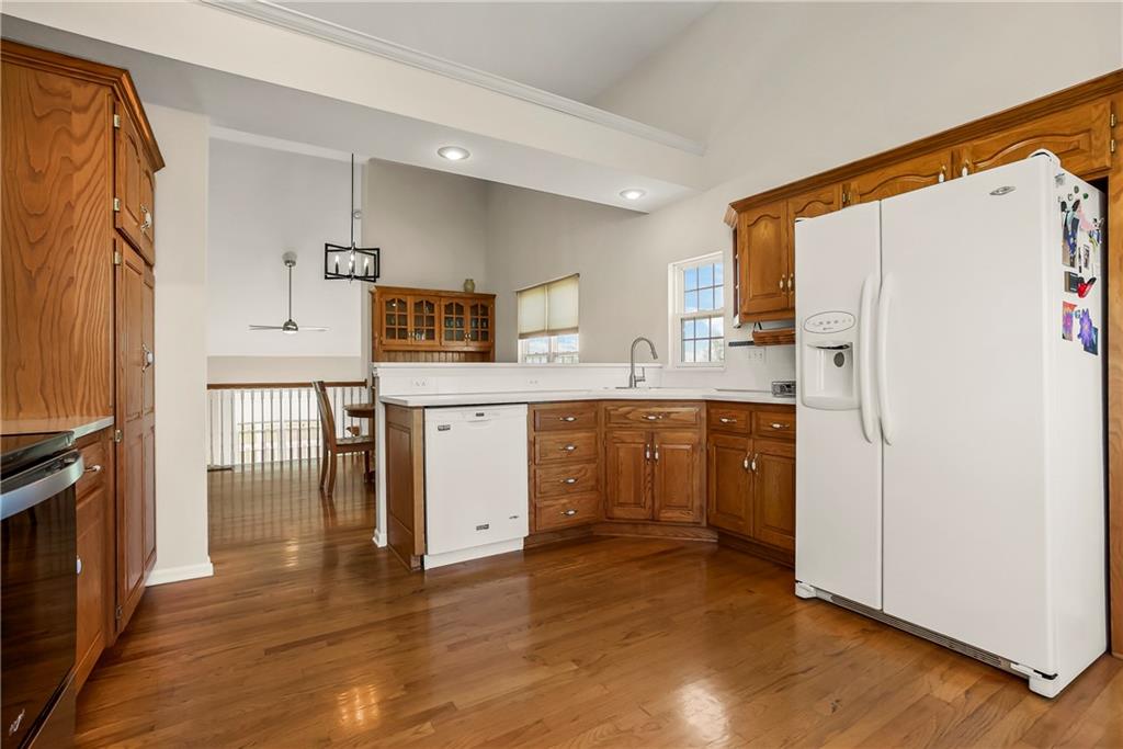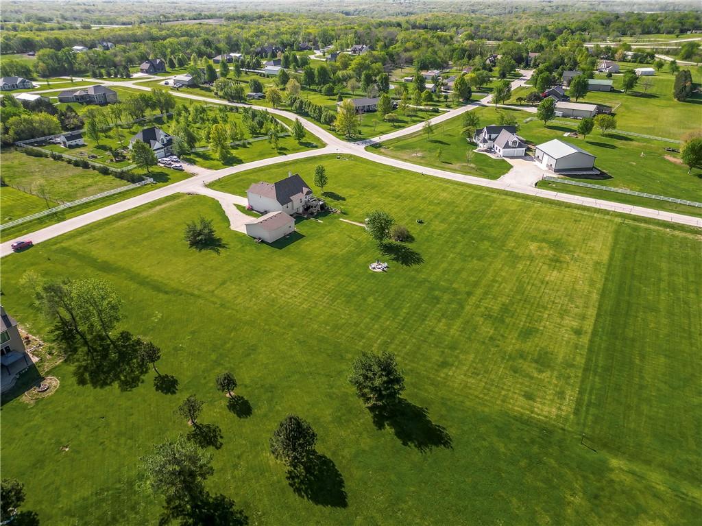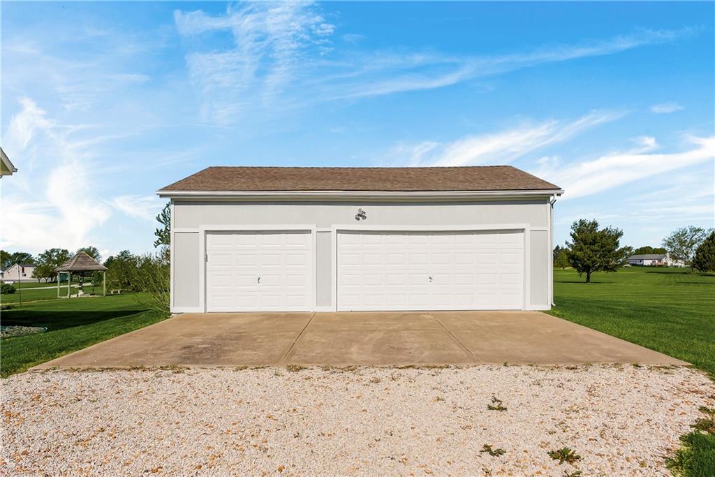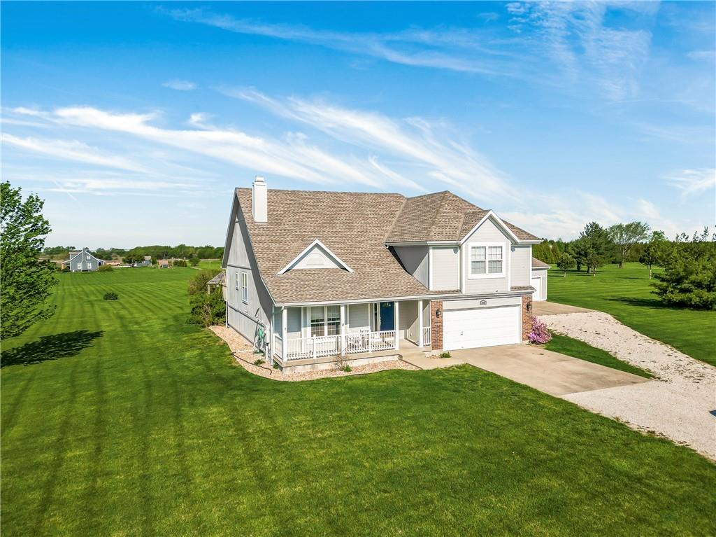 Discover the perfect blend of space, comfort, and country charm with this one-owner home set on 3 acres in sought-after Louisburg Country Estates. Step into the inviting living room featuring soaring ceilings and a cozy fireplace. The spacious kitchen offers quartz countertops, stainless steel appliances, and a generous eat-in area...all opening to a deck that overlooks the meticulously maintained yard. The main level includes two additional bedrooms and a full bath, ideal for family or guests. Upstairs, the oversized primary suite features a custom bathroom complete with a separate shower and soaking tub. The finished lower level provides a large living area, an additional bedroom and bath, and walkout access to a private patio, perfect for entertaining or relaxing. For hobbyists or extra vehicle storage, you'll also enjoy a second 3-car detached garage/workshop. Conveniently located near both 68 Highway and 69 Highway, this property offers peaceful country living with easy access to Louisburg or Overland Park amenities.