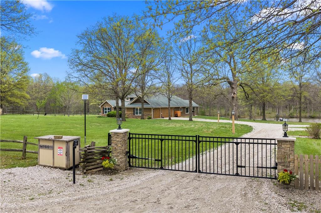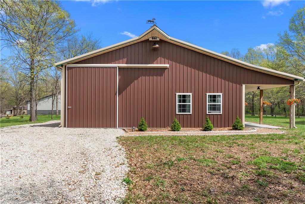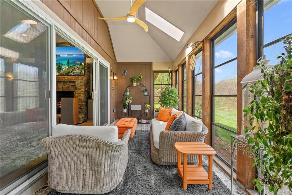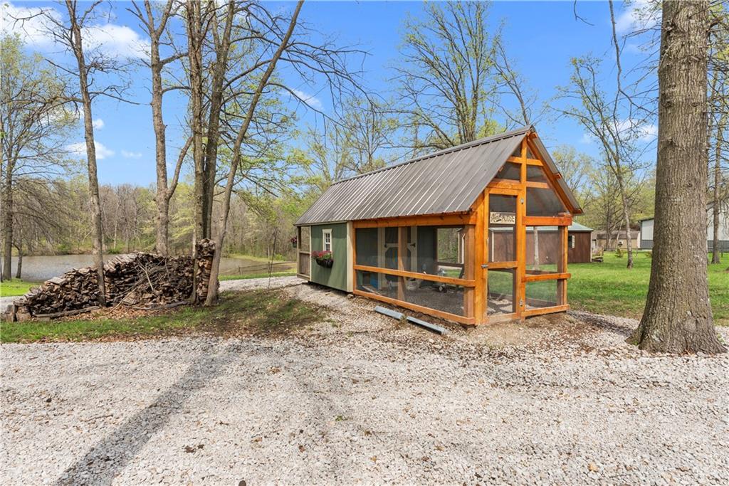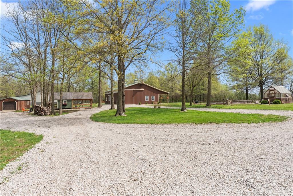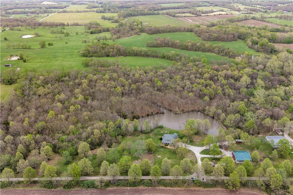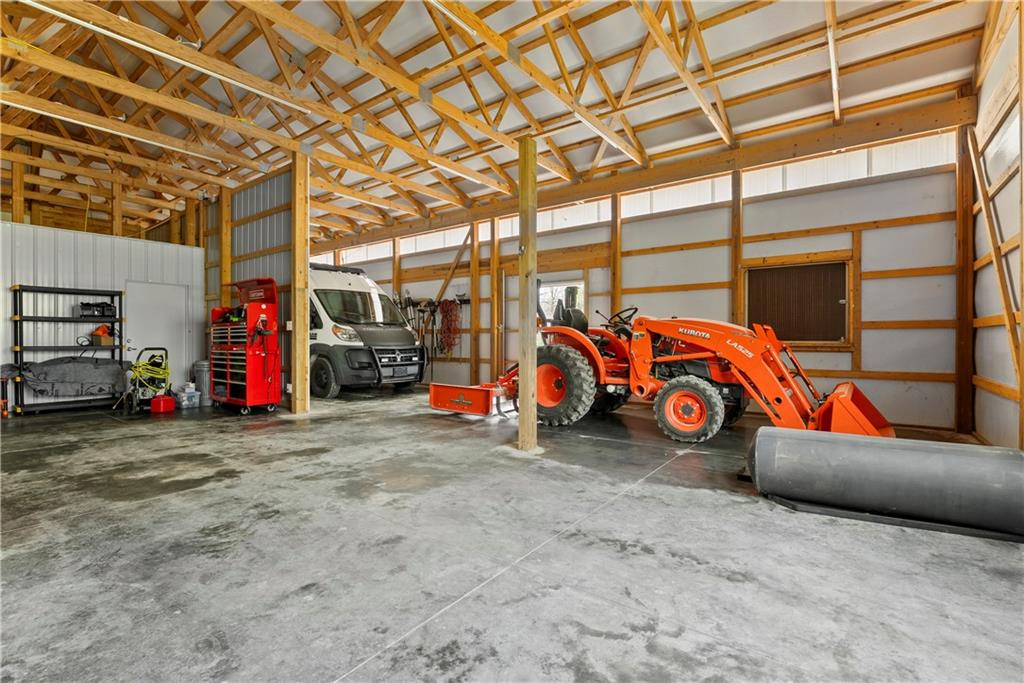 Incredible sanctuary of a property, on 19 secluded beautiful acres. With an incredible lake and lake views from most of the home. This is a rare gem on a quiet private road, split rail fencing, gated entrance, run in shed for horses with tack room and hay storage. Chicken coop with covered run (with chickens, automatic door, feeders, heaters, waterers; that could all stay) greenhouse, 12x32 shed/1 car detached garage, 3 car attached garage, 36x46 outbuilding/shop with 10 foot over hang, finished area for an office or additional relaxation space, plus a second finished area for a tack room etc. 24x24 fenced garden area with raised beds, upgraded landscaping, rebuilt pond with gazebo new dock, and bubbler, upgraded exterior lighting. Interior nearly completely remodeled and meticulously maintained. Beautiful front porch entry with tile, opens to a gorgeous office with beautiful freshly painted wooden built ins, living room with fireplace pre wired for sound systems inside and out and incredible lake and treed property views. Beautiful 3 seasons room with new tiled, heated floor that walks out to a beautiful outdoor kitchen. Gorgeous updated hardwood flooring. Upgraded kitchen with stainless steel appliances, laundry and pantry with upgraded storage. 3 generously sized bedrooms and 2 bathrooms, Primary bedroom boats plenty of natural light and more lake views, walk in primary closet with improved storage. Geothermal heat/AC plus so much more.