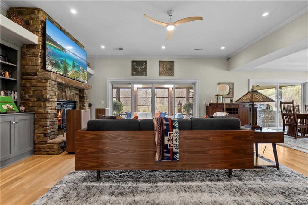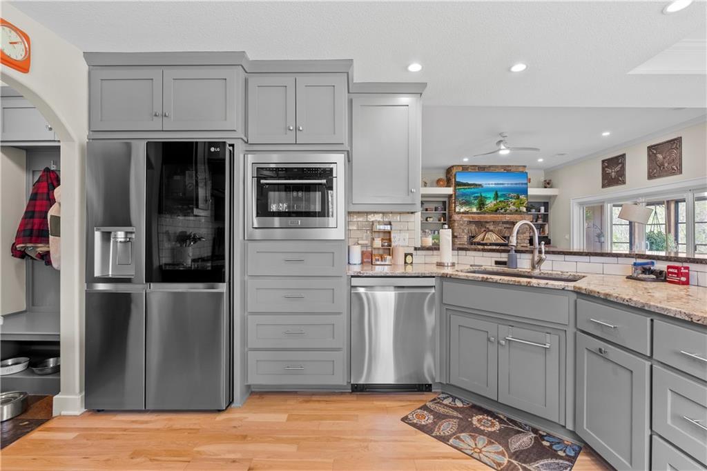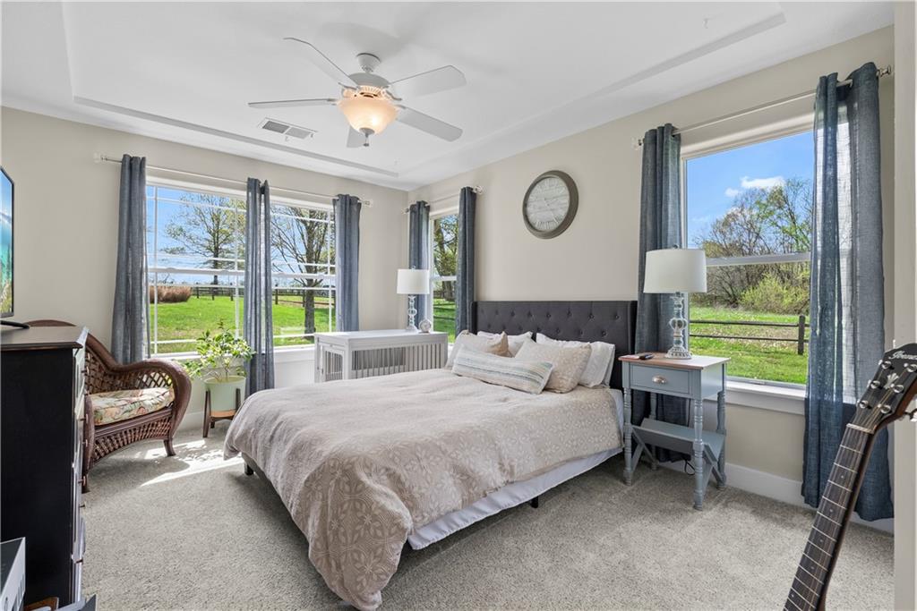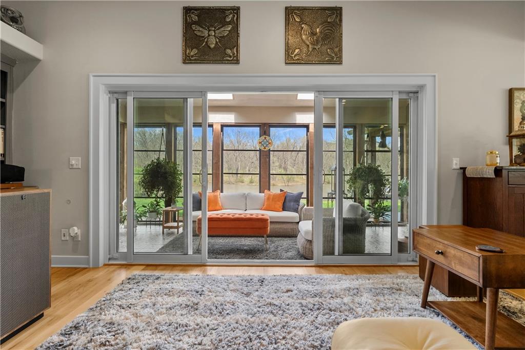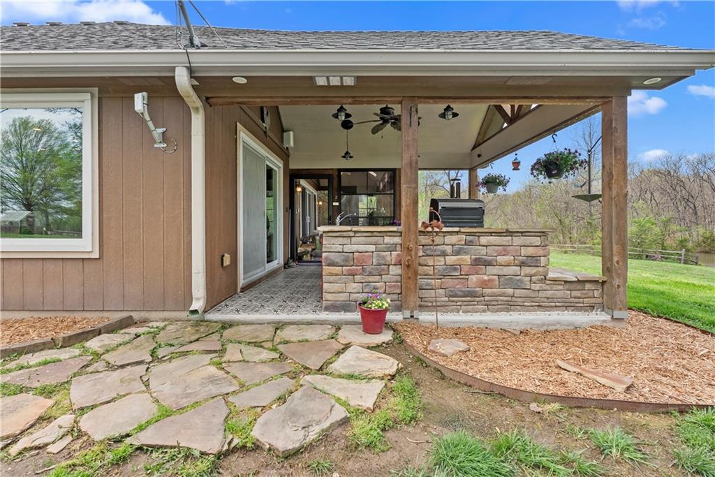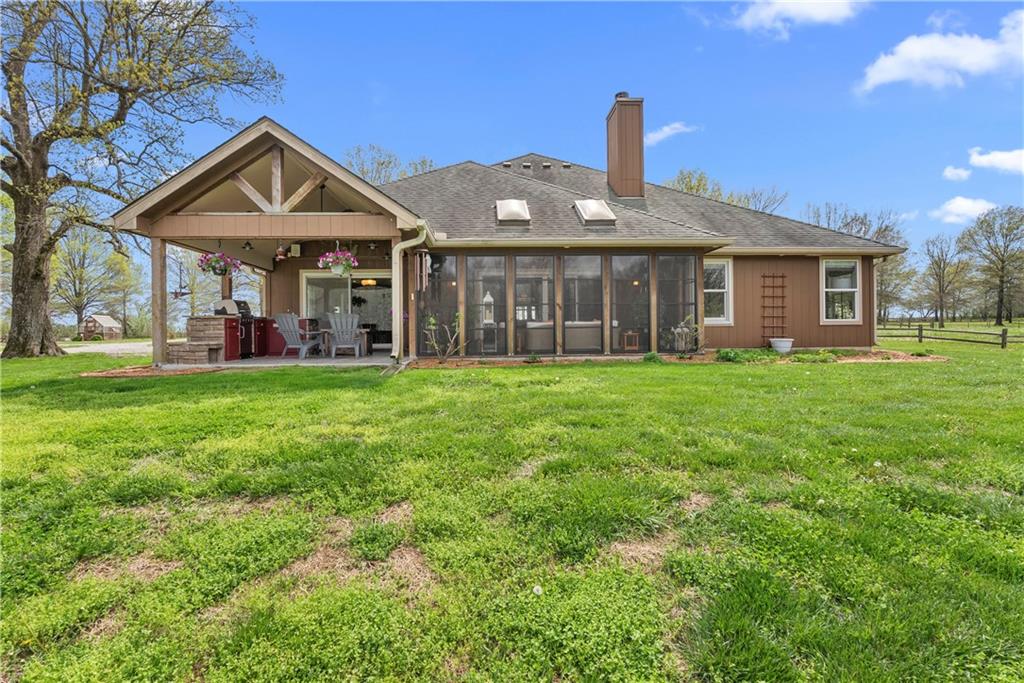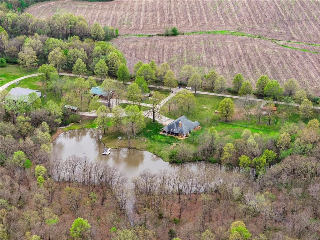 Incredible sanctuary of a property, on 19 secluded beautiful acres. With an incredible lake and lake views from most of the home. This is a rare gem on a quiet private road, split rail fencing, gated entrance, run in shed for horses with tack room and hay storage. Chicken coop with covered run (with chickens, automatic door, feeders, heaters, waterers; that could all stay) greenhouse, 12x32 shed/1 car detached garage, 3 car attached garage, 36x46 outbuilding/shop with 10 foot over hang, finished area for an office or additional relaxation space, plus a second finished area for a tack room etc. 24x24 fenced garden area with raised beds, upgraded landscaping, rebuilt pond with gazebo new dock, and bubbler, upgraded exterior lighting. Interior nearly completely remodeled and meticulously maintained. Beautiful front porch entry with tile, opens to a gorgeous office with beautiful freshly painted wooden built ins, living room with fireplace pre wired for sound systems inside and out and incredible lake and treed property views. Beautiful 3 seasons room with new tiled, heated floor that walks out to a beautiful outdoor kitchen. Gorgeous updated hardwood flooring. Upgraded kitchen with stainless steel appliances, laundry and pantry with upgraded storage. 3 generously sized bedrooms and 2 bathrooms, Primary bedroom boats plenty of natural light and more lake views, walk in primary closet with improved storage. Geothermal heat/AC plus so much more.