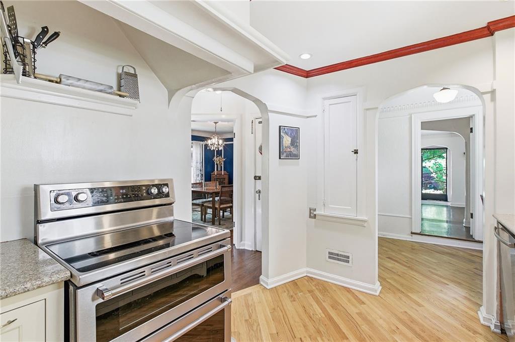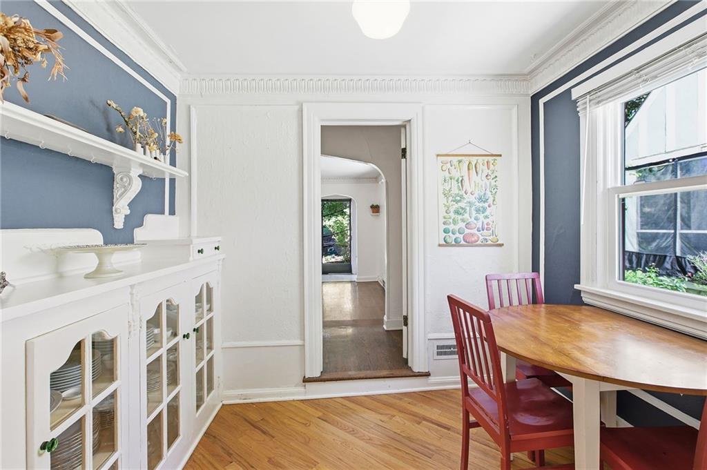 Classic Tudor charm in sought-after Oak Meyer Gardens w/a STUNNING 90+ year-old oak tree anchors the front yard, adding timeless character and curb appeal. This rare 1.5-story home offers 4 bedrooms and a coveted main-floor primary suite. You’ll love the intricate plaster crown molding, picture molding, abundant built-ins, and original oak hardwood floors throughout. Notable updates include NEW WINDOWS & HVAC, and all kitchen appliances plus washer and dryer replaced in 2023 & cordless blinds on most of the windows! The living room is filled with natural light thanks to triple windows that create a bright, welcoming space. Outdoor living is just as special, featuring a covered deck draped in wisteria and a charming screened-in porch. The yard is a gardener’s dream with established flower beds, a native pollinator garden, and fruit plantings including raspberries, blueberries, and an Asian pear tree—all within a fully fenced yard w/ a PRIVATE driveway! Located in the heart of Oak Meyer Gardens, this home is part of a vibrant, close-knit community known for its annual block party, Donut Day, chili potluck, and Halloween parade. Walk to Académie Lafayette & come be a part of an amazing community!