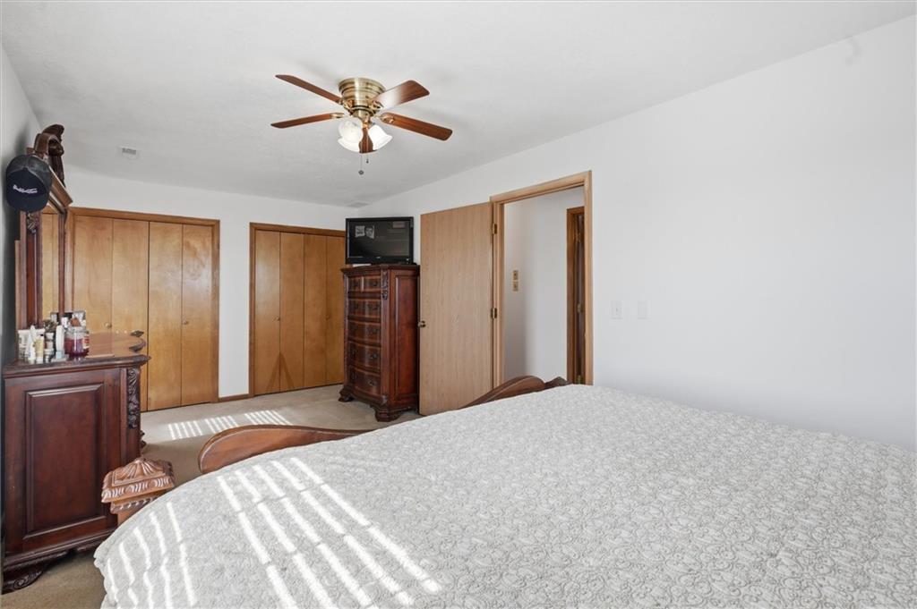 Beautifully maintained ranch home on 19+/- rolling acres featuring 2 main level bedrooms plus 3 non-conforming bedrooms in a fully finished walkout basement complete with a large second kitchen and spacious living room. Meticulously prepped for your comfort and located just 25 minutes from Kansas City, this property delivers the perfect mix of comfort, function, and wide open space. As you drive up, scenic views unfold across your land, buildings, fencing, and stocked pond. The large covered front porch is made for conversations that turn into lasting memories. The main level offers an open concept layout filled with natural light. The kitchen has northern exposure to the property, while the living room features large south-facing windows. Two oversized bedrooms sit on the main floor, including a spacious primary suite with private bath and pond views. A full hallway bath adds convenience. The kitchen includes granite countertops and space for a full size dining table. The walkout basement expands the living space with three additional non-conforming bedrooms and direct outdoor access, ideal for multi-generational living, guests, or entertaining. Formerly a cattle farm, the property is well suited for horses and includes recently painted fencing and gates, refreshed barns, and five total outbuildings. The 40x60 shop with concrete floors and power offers serious workspace. Fencing supports multiple farm animals, including that sought after Highland cow. An additional acreage directly north is available to expand your farm life even more. In the spring, the land comes alive with lush grass and vibrant views. Peaceful country living with city access within minutes. Well cared for. Move in ready. Built for lifestyle and legacy.