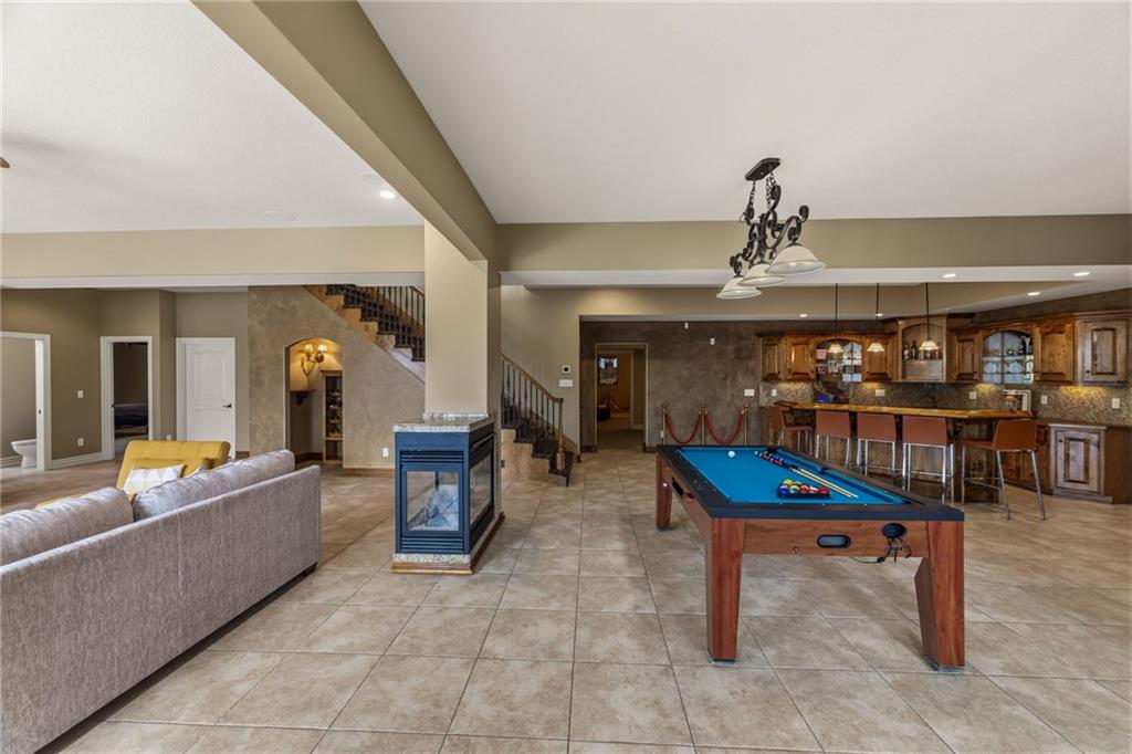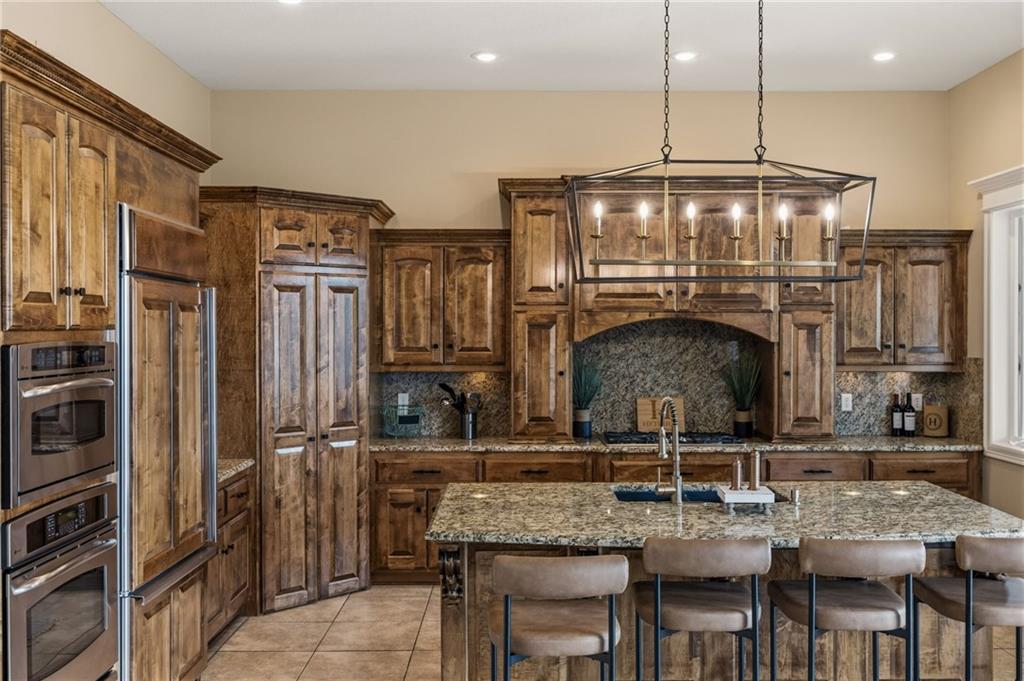 From the moment you approach, this stunning reverse 1.5-story masterpiece commands attention. Grand steel double doors open to over 5,000 square feet of meticulously designed living space, where every detail has been crafted for those who expect nothing but the best.Entertain in style on the main level, where an open-concept layout flows effortlessly from a formal dining room and private office to a breathtaking great room anchored by a gas fireplace. Walls of windows frame your backyard oasis, blurring the line between indoor elegance and outdoor paradise. The chef's kitchen is nothing short of spectacular — featuring stainless steel appliances, a double built-in oven, a 5-burner gas cooktop, expansive granite countertops, a oversized island, and a walk-in pantry. Whether you're hosting an intimate dinner or a grand celebration, this kitchen delivers. Your private retreat awaits in the luxurious main-level master suite, overlooking the sparkling saltwater pool and endless forest beyond. The spa-inspired en suite boasts double vanities, granite countertops, custom cabinetry, a soaking tub, oversized tile shower, and a private water closet. The massive walk-in closet — complete with a center jewelry island — is a statement all its own. The basement is an entertainer's crown jewel. Descend the showstopping central staircase to a world-class entertainment level featuring a full bar, a dedicated theater room with projector and surround sound, a wine room, and a bonus room ideal for a private gym. Step outside into your personal paradise. The backyard is an absolute showstopper — a resort-style saltwater pool, hot tub, and lush professional landscaping, all backed by a wall of pristine, private forest. No rear neighbors. Just nature, serenity, and the sounds of wildlife. Additional highlights include a four-seasons sunroom, Oversized three car garage and fenced in yard. This is not just a home — it's an experience. Schedule your private showing today.