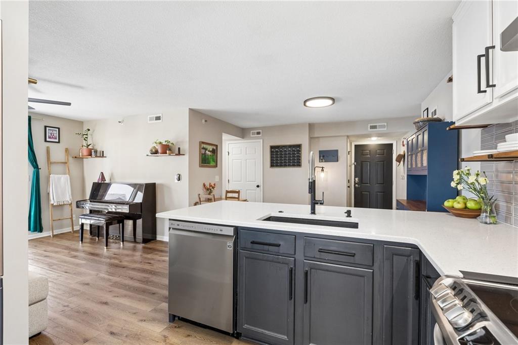 WOW! Beautifully updated FIRST-FLOOR condo offering true, low-maintenance living! This move-in ready home features luxury vinyl plant flooring throughout and a stunning updated kitchen with quartz countertops, modern cabinetry, updated hardware, designer backsplash and a large flat breakfast bar perfect for entertaining! Major updates already completed including HVAC (1.5 years old) plus washer & dryer (1.5 years old) that stay with the home! Enjoy the convenience of first-floor living with ADA-compliant doorways and an HOA that covers WATER, TRASH, LAWN CARE, SNOW REMOVAL & BUILDING EXTERIOR MAINTENANCE INCLUDING SIDING AND ROOF -- helping keep living simple and insurance costs lower! Community amenities include a dog park for your furry friends, making this an ideal combination of style, convenience and low maintenance living! Truly a MUST-SEE!