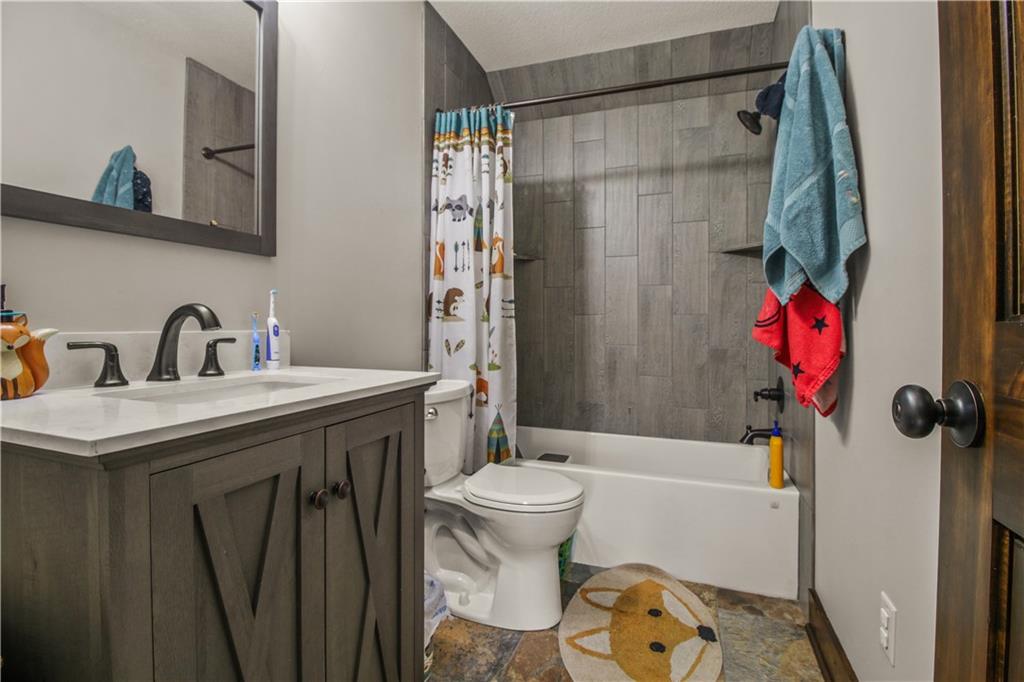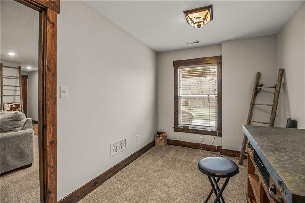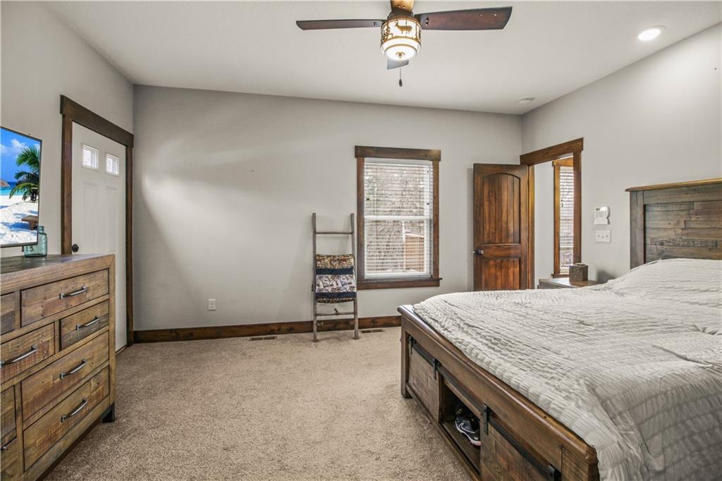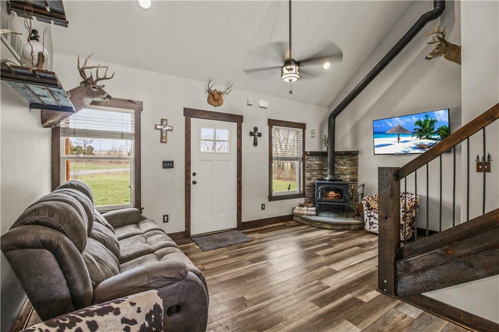 Escape to your own private retreat on 10 beautiful acres in Oak Grove, where this nearly new custom home is surrounded by mature trees, including black walnut, a creek, abundant wildlife, and established walking trails. Properties like this rarely come available in Oak Grove, offering privacy, space to roam, and a thoughtfully designed home just minutes from town. Inside, the home features vaulted ceilings, granite countertops, and a wood-burning stove set against a beautifully crafted stone fireplace wall, creating a warm focal point. A custom staircase with industrial-style rebar spindles and a barnwood-style railing adds character. The kitchen includes custom cabinetry, a copper sink, granite countertops, and a walk-in pantry. The main-level primary suite offers double vanities, a tiled shower with dual shower heads, and main-level laundry. A private deck just off the suite provides a quiet space to enjoy the surrounding nature. Upstairs are two additional bedrooms, each with their own bathroom features. The finished basement includes a bedroom, full bathroom, kitchenette, built-in surround sound with subwoofer, and space for entertaining or extended living. A reinforced concrete room offers the option of a storm shelter or secure storage. The heated and cooled basement garage includes a utility sink, hot and cold water hose bibs, and a built-in speaker system, ideal for washing vehicles or outdoor gear. Outside, enjoy the cedar front porch with antler chandeliers or the 12×24 deck, along with professional landscaping, driveway trees, and a long driveway with a concrete turnaround. The acreage offers woods, a stream, walking trails, and an elevated enclosed deer stand, perfect for outdoor enthusiasts or anyone seeking peaceful country living. Sqft is estimated. Buyer and buyer’s agent to verify.