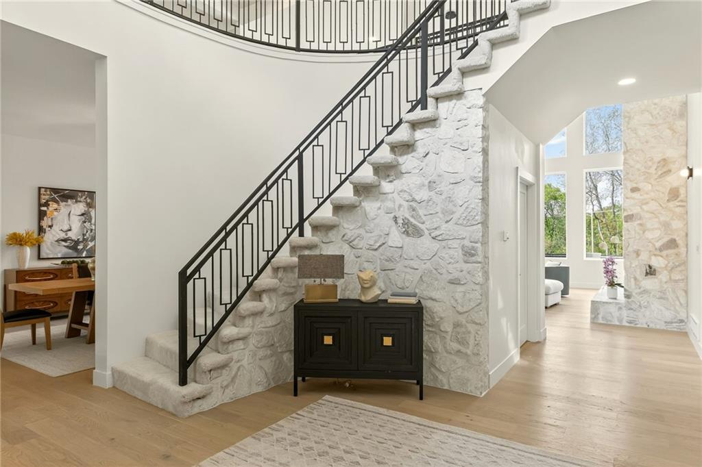 This one-of-a-kind resort style estate offers so many possibilities. Whether being used as a single-family home, a corporate retreat, Bed & Breakfast (World Cup?) or event venue, The Duncan House carries grandeur, functionality and beauty. Luxuriously redesigned for the modern-day owner, Duncan honors original charm with floor to ceiling thermal windows w/ stunning views and beautifully crafted Georgian stone on the front spiral staircase & impressive fireplace. Its calm presence will inspire both dreamers and planners alike. With a full-sized sport court, both families and guests can enjoy basketball, pickleball or tennis. Or if they prefer, traverse nature on the almost 9 acres of trails. More into inside exercise? The custom indoor workout room with soft close glass doors offers the perfect space to get and stay fit. After work out or play, enjoy a dip in the heated salt-water pool with a 10' deep end or relax and unwind in the new HUUM sauna on the lower level. But that's not all you'll find there. The walk-out LL offers multiple spaces for entertaining, movie watching, events/gatherings and intimate opportunities. Returning to the main level, the primary wing includes a massive bedroom, 2 walk-in closets, direct access to the back deck and a spa-inspired ensuite you won't want to leave. On the same level, get things done in the private office and enjoy the open-concept living room and fully remodeled kitchen w/ cantina doors that expand your living space. A coffee bar, pantry and laundry are tucked away behind Harmon Hinge doors that also provide access to the garage & back stairs to the upper level. Upstairs you'll find a 2nd primary with ensuite, 4 generous bedrooms, 2 more full bathrooms, 2nd laundry and playful loft area overlooking the front entrance and living room. Once you enter this gated estate, you'll find this steel beam & concrete constructed property, built by those who crafted the KC Stadiums, is exactly what you're looking for and more.