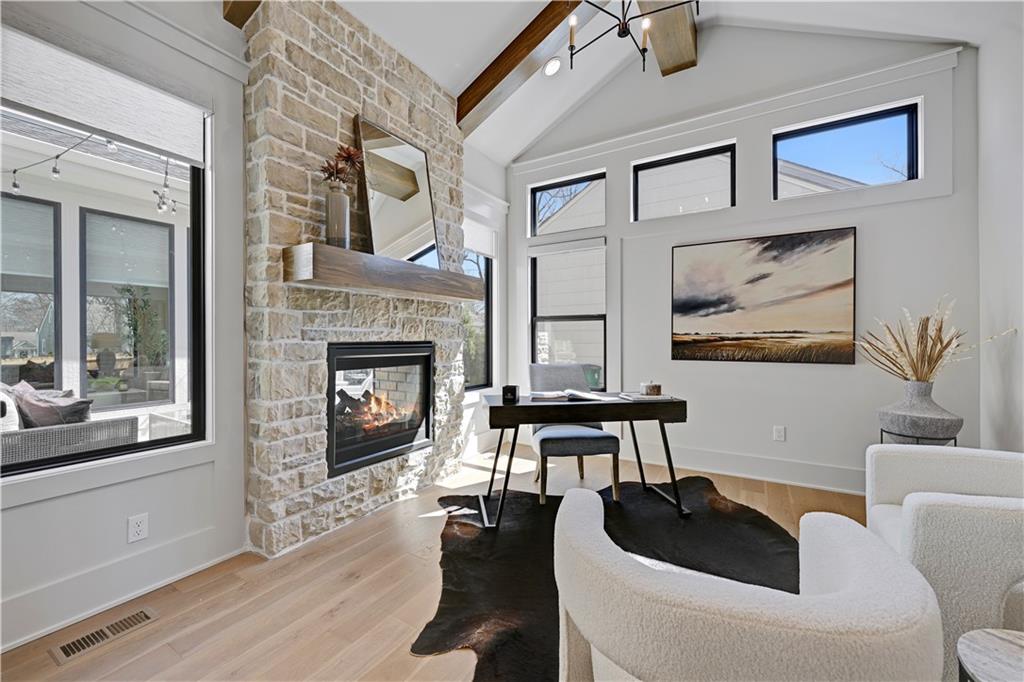 Welcome to 6109 El Monte, a stunning residence built by the award-winning James Engle Custom Homes LLC ready for viewing featuring the highly sought-after Aurora floor plan with a very fitting Farmhouse elevation. This home features decorator curated selections, making this a great opportunity for buyers that prefer a more streamlined new home buying approach. Step inside to discover 5 bedrooms 5 full, and 1 half baths. The property has an incredible opportunity for a home office complete with a cozy fireplace and picturesque views of the amazing courtyard that is beautifully decorated and landscaped, creating the perfect setting for productivity or relaxation. The heart of the home is the gourmet kitchen, featuring high-end GE Café appliances and an additional prep kitchen as well as a walk in pantry making it a chef’s dream. Multiple large windows in the living room, dining room and kitchen allowing for an abundance of natural light from the eastern sun. The finished lower level is equally impressive, boasting a stylish wine closet, bar, and a plethora of additional features that enhance both comfort and convenience. This home is truly turn key including window coverings, 6ft privacy fence and a matching GE cafe fridge. This home is currently being utilized as a model home but will be ready for occupancy by the end of May 2026! Don’t miss your chance to experience this exceptional property.