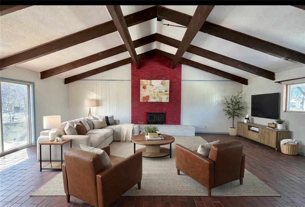 This completely brick home has over 3,000 sqft of space and a great location just minutes from Legends/Shopping, easy access to Major highways and other amenities. The big ticket items are all newer Roof 2023, HVAC 2020, Newer Vinyl Windows, low maintenance brick exterior. The inside has huge potential for you to put your stamp on. Upon entry you will find a room to the right that can be used for a private office or living room, The kitchen has great space and can use your personalization. The family room is enormous with a floor to ceiling fireplace. In addtion there is a large main level laundry room, 3 bedrooms with the primary having an on suite bath and a center hall bath for the other bedrooms. There are 3 more rooms 2 non-conforming rooms with closets and a full bath in the basement. These can be used for additional bedrooms, fitness room, office and more. Then there is the enormous 27 x 23 lower level rec room with fireplace. All of this and a large .34 acre lot this property gives you lots of potential make it your own.