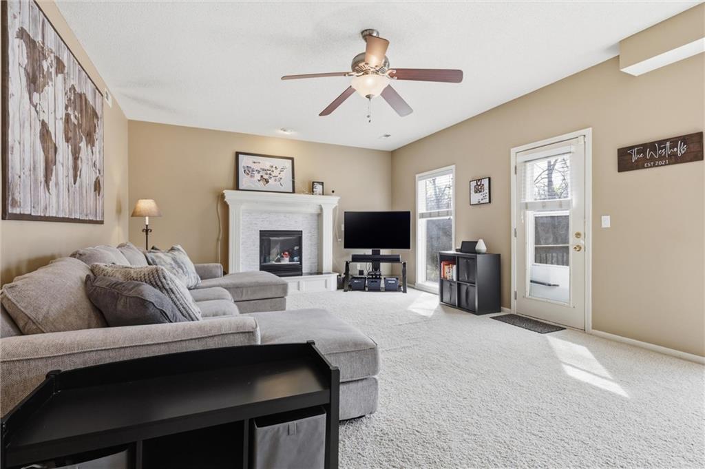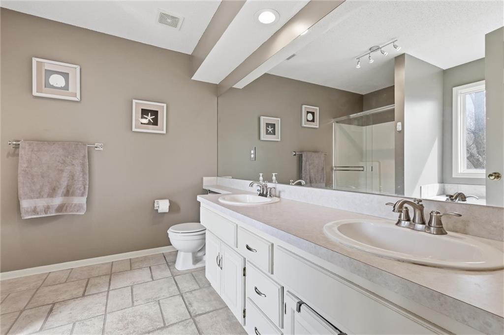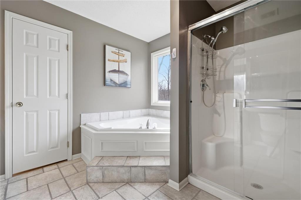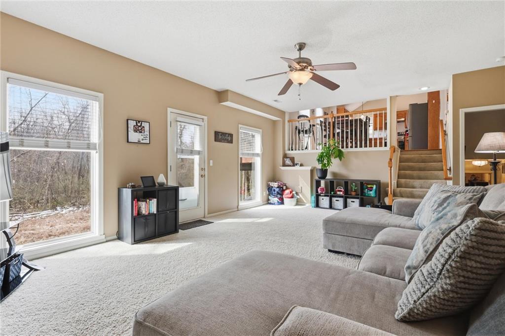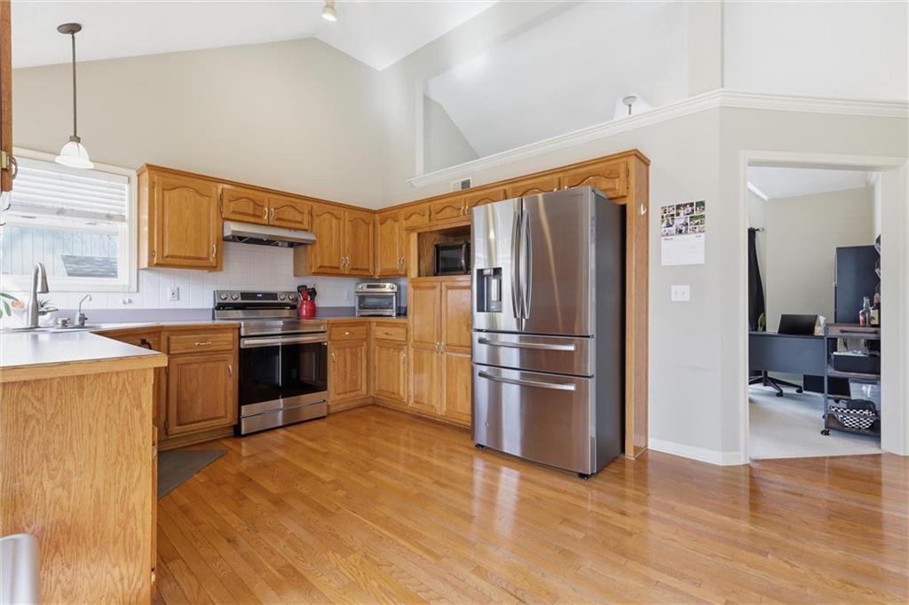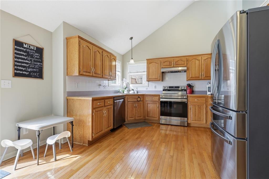 Discover this spacious and well-maintained 4-bedroom, 3-bath home featuring an oversized 3-car garage. Upon entry, you’ll find two inviting living areas and beautiful hardwood floors that extend through the kitchen and breakfast nook, highlighted by vaulted ceilings that create an open and airy feel. The Kitchen features NEW stainless steel appliances, tons of cabinets and ample counter space, overlooking the second family room, where there is a cozy gas fireplace that adds warmth and charm to this home. To top it off, this home offers a generously sized primary suite with vaulted ceilings, a walk-in closet, and an en-suite bath complete with a jetted tub and double vanity. For added convenience, three bedrooms and the laundry room are located on the same level. And the finished basement includes a private fourth bedroom with its own entrance and bathroom—ideal for guests, extended family, or added privacy. Step outside to a backyard that backs to a wooded area, providing privacy and a setting perfect for entertaining. Conveniently located with easy access to I-35, this home offers both comfort and accessibility. NEW Roof, gutters, and gutter guards in 2019, NEW HVAC in 2018, NEW Insulation in 2017!
