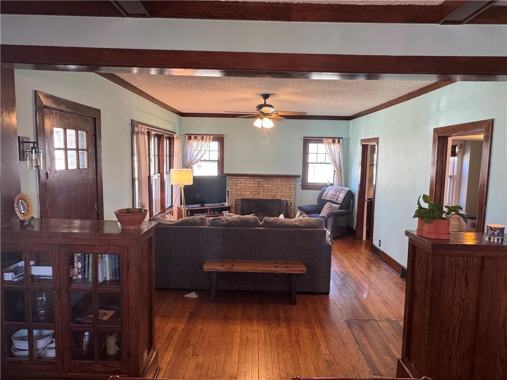 This charming 1.5-story home offers classic character and modern convenience. Four bedrooms with walk-in closets and two full baths provide flexible living space — ideal for families or those who love hosting. Original beautiful hardwood floors along with built-in bookcases and window seats. Warm wood floors flow through the main living areas, creating an inviting, timeless atmosphere. The home sits on a desirable corner lot and features a welcoming front porch perfect for morning coffee or evening relaxing. A dedicated laundry room adds practicality, and the attached one-car garage offers secure parking and extra storage. Full basement for storage as well. Well-maintained and full of curb appeal, this Paola home blends traditional charm with everyday functionality.