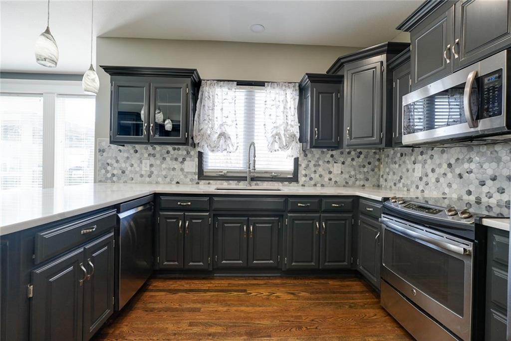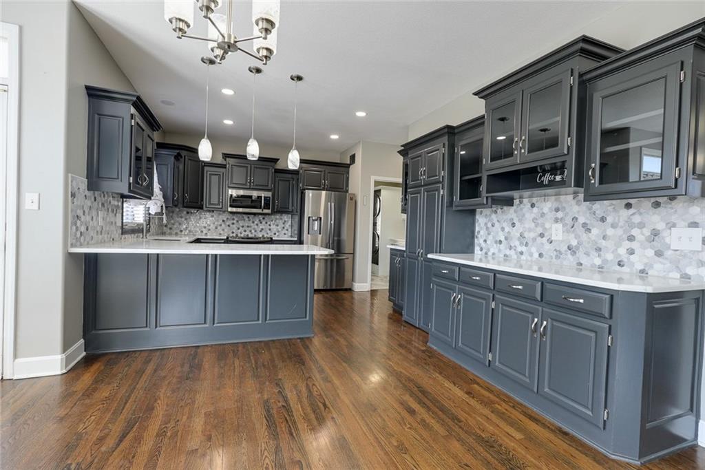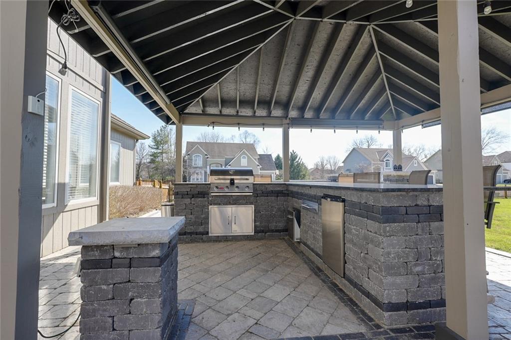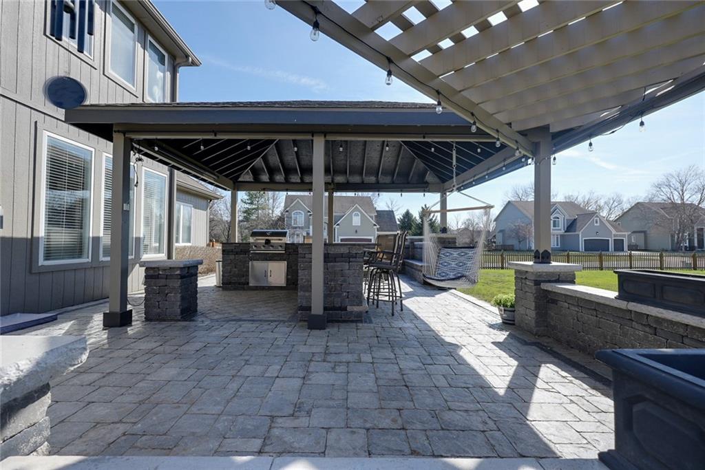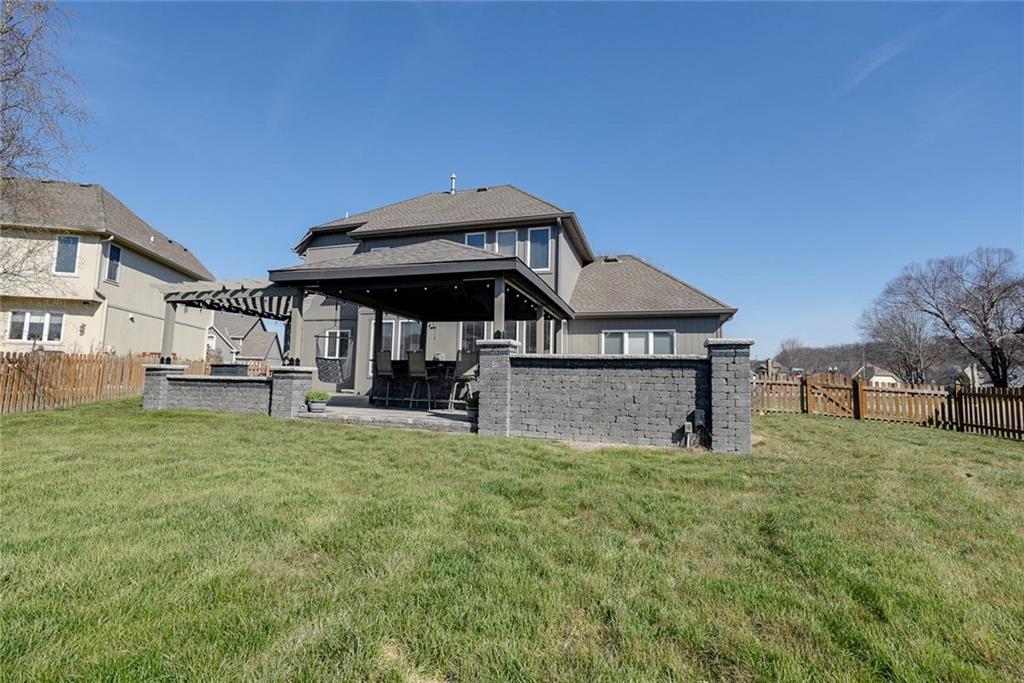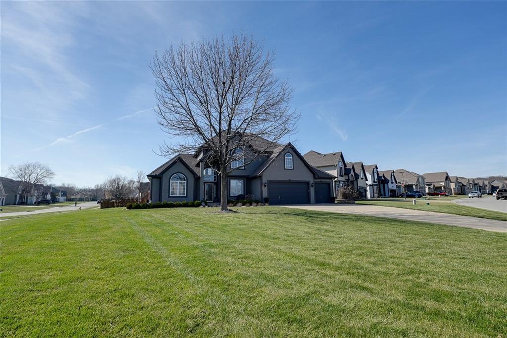 Welcome to this stunning 1.5-story home featuring 4 bedrooms, 5 bathrooms, and 3,848 square feet of beautifully designed living space. Located in the highly sought-after Blue Springs School District, this home offers the perfect blend of elegance, comfort, and exceptional indoor-outdoor living. Situated on a beautiful corner lot, the home boasts a spacious and thoughtfully designed layout, ideal for both everyday living and entertaining. You’ll find custom features throughout, including a unique built-in dog kennel in the laundry room that can also serve as additional storage. Gorgeous quartz countertops run throughout the home, adding a modern and upscale touch. The fully finished basement and complete remodel make this home truly move-in ready, with updated finishes and attention to detail at every turn. Generously sized bedrooms and five well-appointed bathrooms provide ample space and convenience for family and guests alike. Step outside to your private outdoor retreat. The patio is designed for year-round enjoyment, featuring shades for comfort, a built-in grill and refrigerator, and a cozy fire pit. A 110-inch projector screen takes entertaining to the next level—perfect for movie nights or watching the big game under the stars. With its prime location, impressive size, and incredible custom features, this home is a rare find. Don’t miss your chance to make this exceptional property your own.