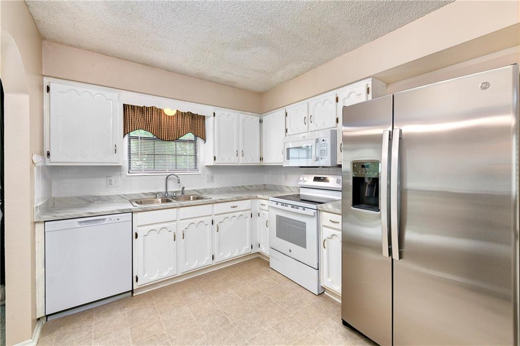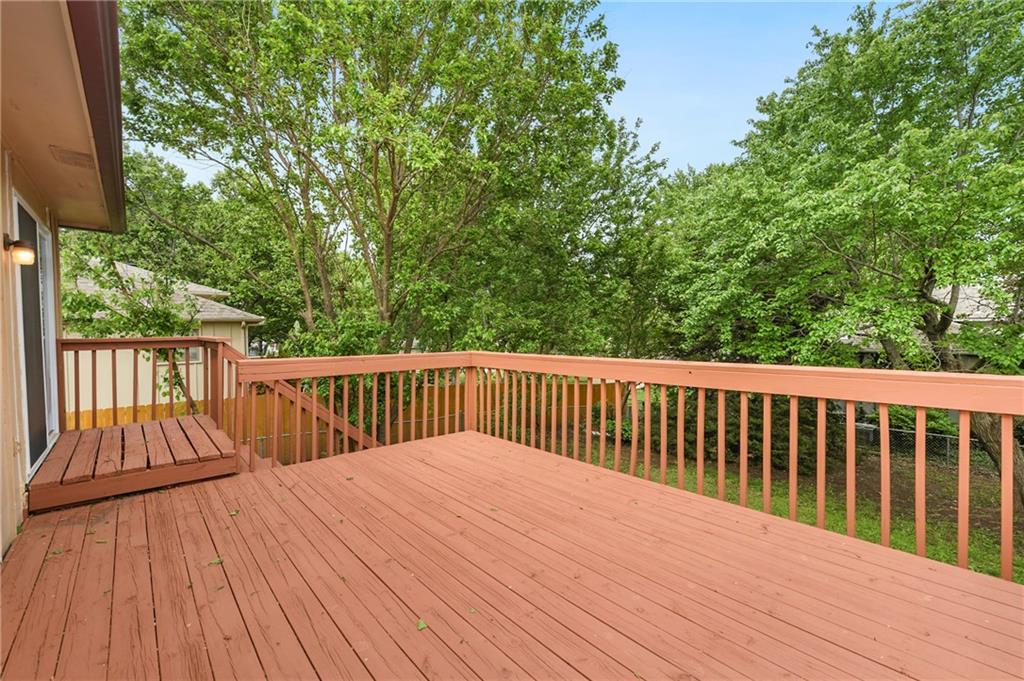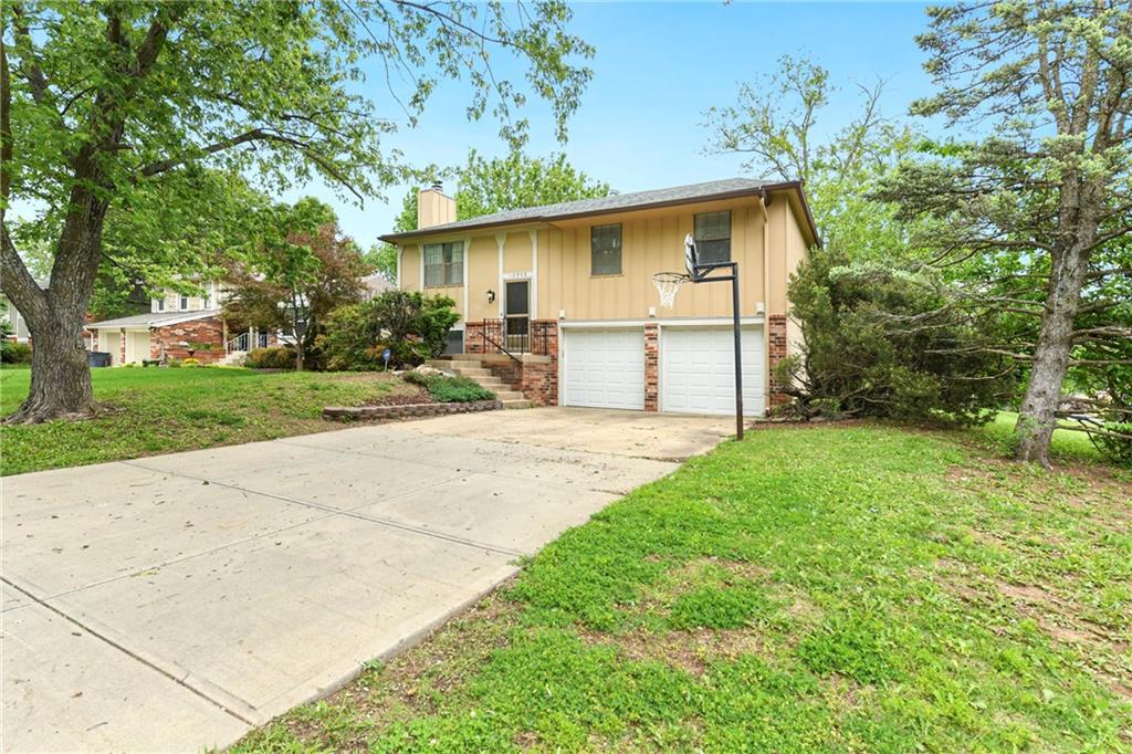 Perfect starter home in fantastic Olathe location! This Devonshire split entry has fresh interior paint and is ready for you to come call it home! The entryway is open and airy with updated fixture and pleasing view of the finished lower level with brick fireplace. The main level begins with a large living room which flows into the dining room and leads to a large rear deck. The kitchen is updated with white cabinets, grey & white countertops, nickel hardware, and newer appliances including smoothtop range, microwave, and S/S fridge. The main bath has a double vanity and the tub/shower has updated tile and fixtures. The primary bedroom offers direct bathroom access and privacy from the vanity area. The roof, HVAC and HWH are all under 10 years old and the home features many updates including new blinds throughout, new rear sliding door, new washer and dryer. The finished lower level offers updated high traffic carpet, a family room, a game room or home office, and a recently remodeled bath with shower & whirlpool tub. The brick fireplace has custom glass doors and built-in bookcases. There are ceiling fans throughout the entire home and as well as a security system, smart thermostat, whole house humidifier, radon mitigation system. The incandescent lights have been updated with soft light LED and the outlets have all been updated to white. There's an extra-deep garage with interior spigot, storage, insulated garage doors & keyless entry. All this pleasantly situated on a large corner lot with mature trees, fence, and a large freshly stained deck. The elementary school is just a couple blocks away along with the Indian Creek Trail system, Frontier Park, Frontier Pool. Access to restaurants and shopping as well as I-35 are all just a couple minutes away. The combination of location, updates, and affordability make this an easy decision! Call us today to schedule your showing.