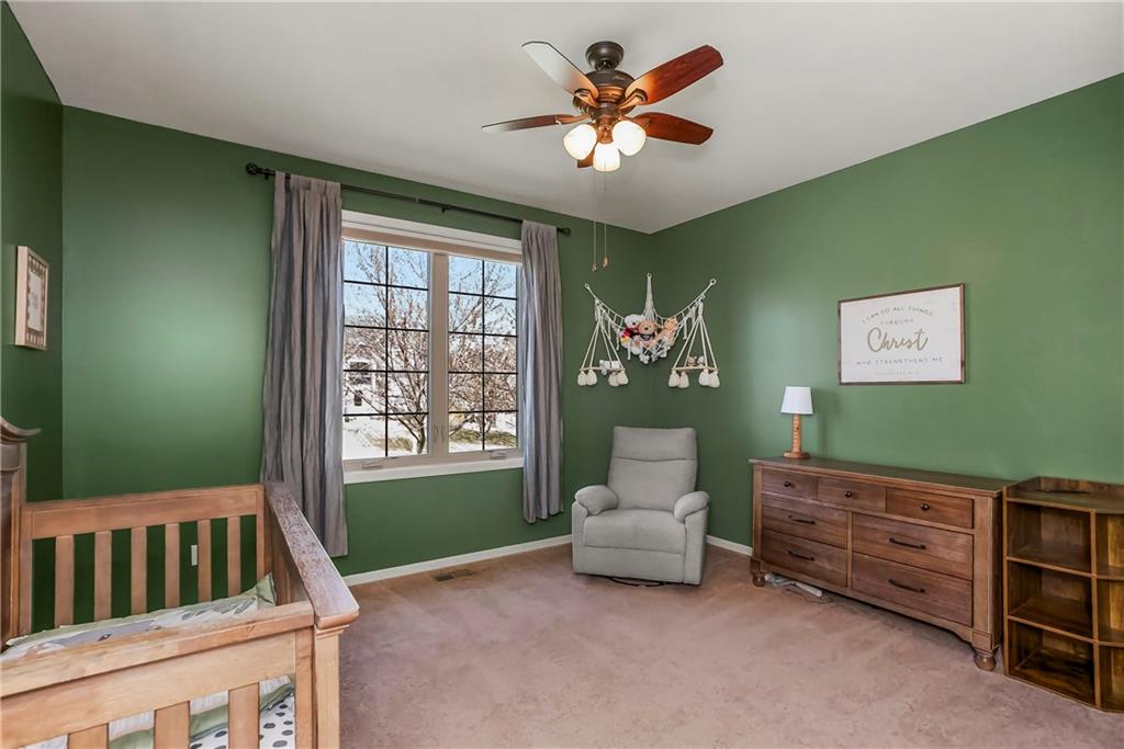 This Popular Reverse 1 1/2 story plan by D&M Builders is ready for you to move in! Enjoy the huge kitchen with 2 walk-in pantries that is open to the expansive great room with focal point fireplace. The dining room is conveniently a part of this space and opens to a covered deck. The covered deck has a bonus retractable awning extending the covered area. The large backyard is totally fenced. The home is conveniently located within walking distance to the sought-after Prairie Trail elementary school as well as middle and high schools. The community swimming pool is also nearby. Other features of this home include an instant hot water filler in the kitchen, front bedroom that has a full bath next to it, high ceilings in the great room, a soft water system, a radon mitigation system and a boot bench area as you come into the home from the garage. Please come take a look and make it your own!