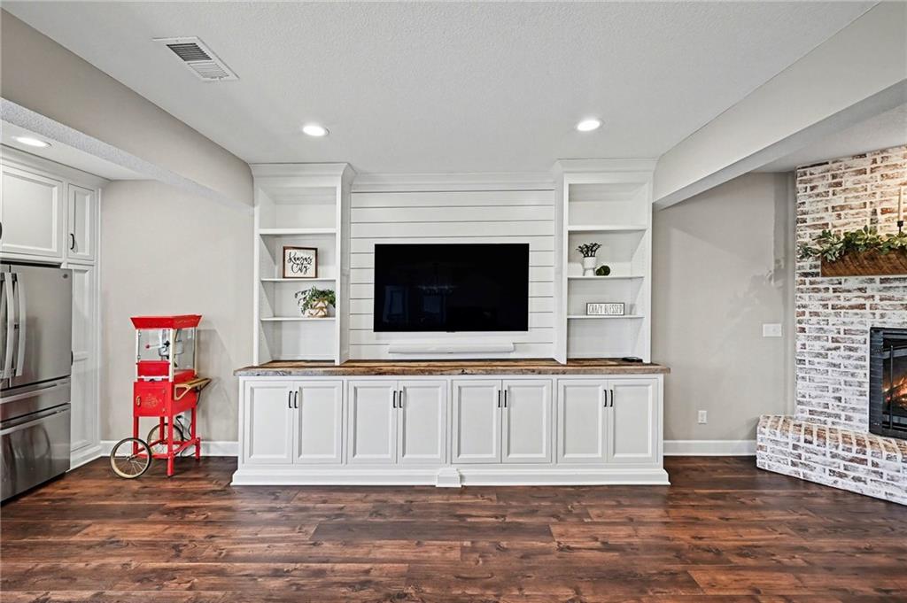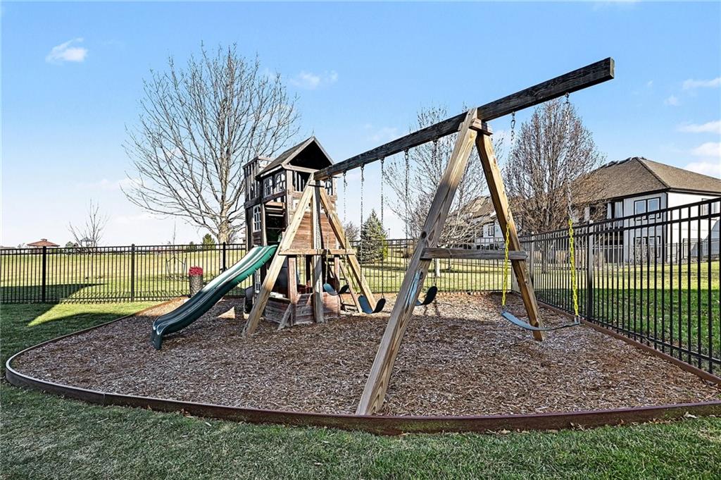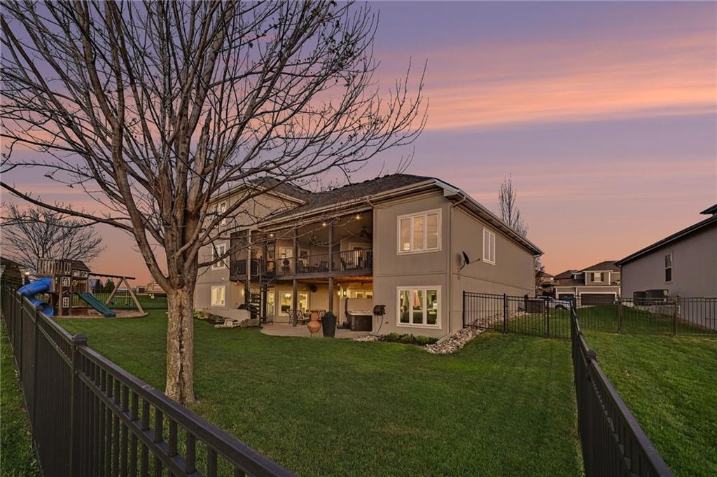 Welcome home! This 5 BR, 4.5 Bath 2-story home with 5,068 finished sq ft plus an additional 1,150 workshop in the basement, is ready for new owners. The main level has new paint and new carpet in the bedrooms and the formal living room, and includes an oversized primary bedroom suite with private bath and a large walk-in closet, with a walkout door to a screened patio. The 2 story-high vaulted ceilings in the formal living room and the dining room flow nicely into the kitchen/dining/hearth room, complete with newly painted cabinets, granite countertops, a spacious island, and gas fireplace. Ready for cozy evenings and easy entrance to screened-in porch to capture stunning sunsets. Main-level living with a laundry room right off the kitchen. The 3-Car garage has two garage door openers & features a utility sink. Second floor has its own HVAC system and includes a spacious loft overlooking the main-level living room and a hidden extra storage space over the garage. The second bedroom has a large walk-in closet & a private bathroom, which is also accessible from the loft area. Bedrooms three & four share a Jack & Jill bathroom with private sinks for each bedroom. The 2021 finished basement includes a large family room exiting to a covered patio, a built-in wine storage area, fireplace, and kitchenette with quartz counters, a luxury bath, a bedroom with private patio doors exiting to a covered patio, an exercise room, and extended finished area that could be converted to theater room, playroom, or extra extended living space. The generous 1,150 sq foot workshop off the finished basement includes a utility sink, a built-in workbench, exterior double doors for easy access to projects, storage, or hobby space. Stubbed for a 5th full bathroom. Outdoor features include manicured landscaping, full wrought-iron fencing, backs up to HOA greenspace & close proximity to a full playground, community center, pool, and walking trails. New, high-impact-resistant roof installed.