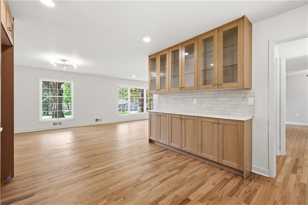 Beautifully updated ranch in the heart of Overland Park, perfectly situated on a spacious corner lot with a fenced yard. This 4-bedroom, 3-bath home offers true main-level living with a thoughtful blend of timeless design and original character. The main floor features an open, connected layout where the living room flows seamlessly into the dining area and kitchen—ideal for both everyday living and entertaining. The fully renovated kitchen features stunning white oak cabinetry, a hidden microwave and trash, and a thoughtfully designed coffee bar with glass upper cabinets to showcase glassware or curated pieces. A second hearth living space creates a cozy retreat, perfect for relaxing evenings. The primary suite is designed with comfort and convenience in mind, featuring a large walk-in shower, double vanity with built-in outlets to keep countertops clutter-free, and a spacious walk-in closet. All closets throughout the home include custom strip lighting for an elevated, luxury feel. Downstairs, you’ll find a fully finished basement offering incredible versatility—complete with a large living area, dry bar ready for a beverage fridge, second laundry room, gym or flex space, fourth bedroom with egress window, and a full bathroom. Every detail in this home has been carefully considered, from the layout to the finishes. All appliances are brand new, including a gas stove. The home is conveniently located near Franklin Park, featuring scenic trails and playgrounds, and is just a quick 2-minute drive to the shops and dining options at 95th & Mission. This is one you don’t want to miss—ready for its next owners to love just as much as it has been.