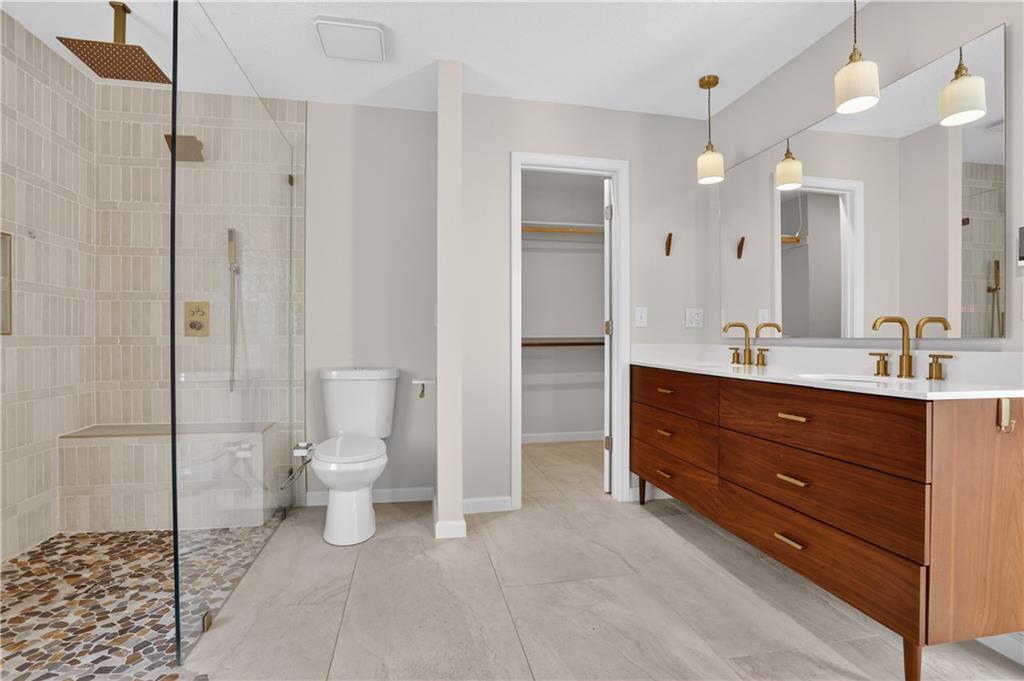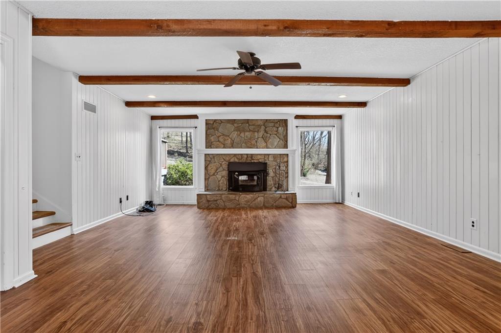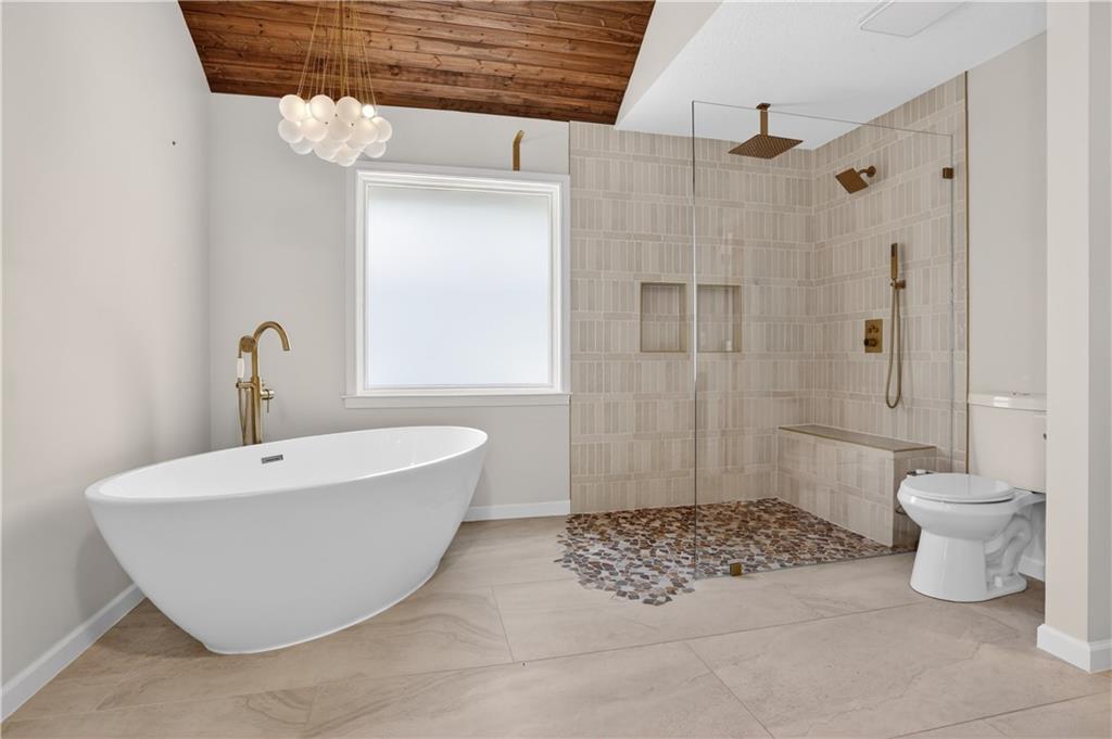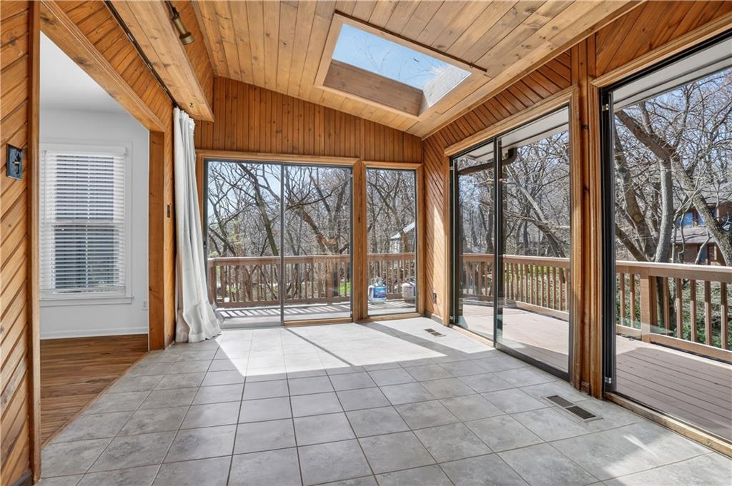 Unique tri-level home offering 4 bedrooms, 3.5 bathrooms, and a flexible layout surrounded by mature trees. Open living and dining spaces with beautiful flooring and abundant natural light. Updated kitchen features painted cabinetry, stainless steel appliances, and gas range, plus a sunroom showcasing scenic wooded views. Inviting family room includes stone fireplace, built-ins, and wet bar. Upstairs offers 3 bedrooms, including a spacious primary suite with whitewashed brick fireplace and fully renovated bath featuring freestanding tub, zero-entry custom shower, and heated tile floors. Walkout lower level includes 4th bedroom or office and full bath. Enjoy outdoor living on the expansive deck, fire pit area, and pergola space with room for future customization. Located in Park Hill School District and just minutes from downtown Parkville’s shops, dining, and parks.