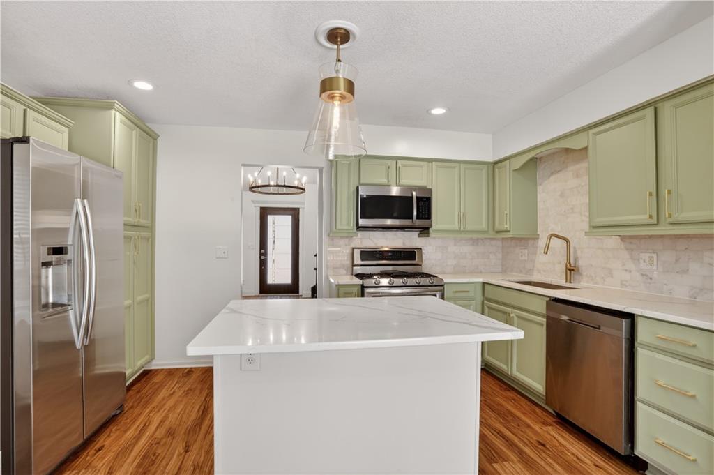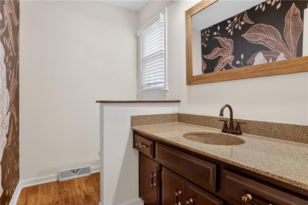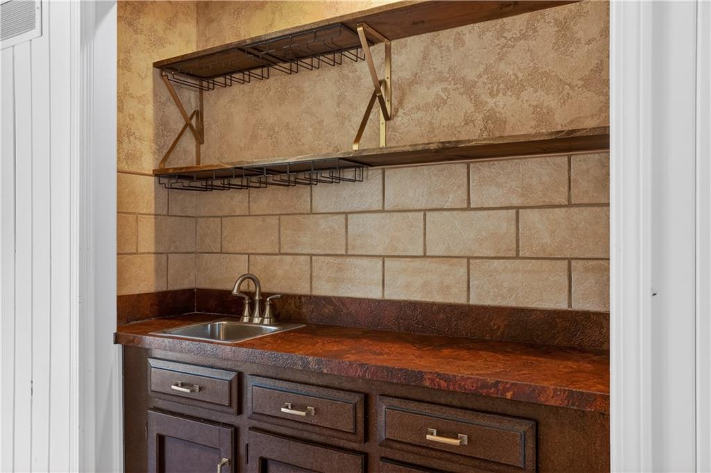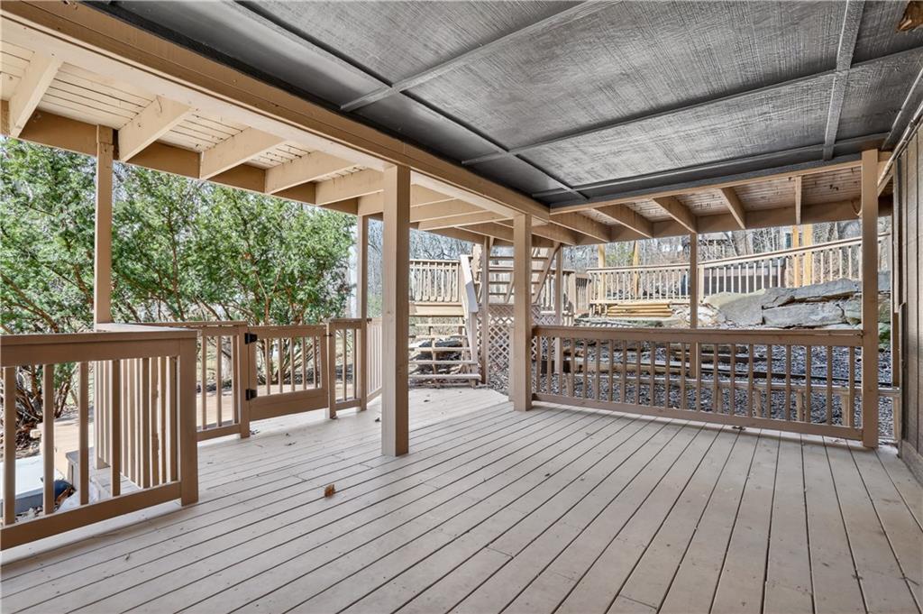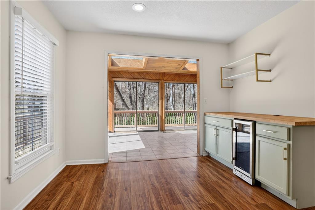 Unique tri-level home offering 4 bedrooms, 3.5 bathrooms, and a flexible layout surrounded by mature trees. Open living and dining spaces with beautiful flooring and abundant natural light. Updated kitchen features painted cabinetry, stainless steel appliances, and gas range, plus a sunroom showcasing scenic wooded views. Inviting family room includes stone fireplace, built-ins, and wet bar. Upstairs offers 3 bedrooms, including a spacious primary suite with whitewashed brick fireplace and fully renovated bath featuring freestanding tub, zero-entry custom shower, and heated tile floors. Walkout lower level includes 4th bedroom or office and full bath. Enjoy outdoor living on the expansive deck, fire pit area, and pergola space with room for future customization. Located in Park Hill School District and just minutes from downtown Parkville’s shops, dining, and parks.