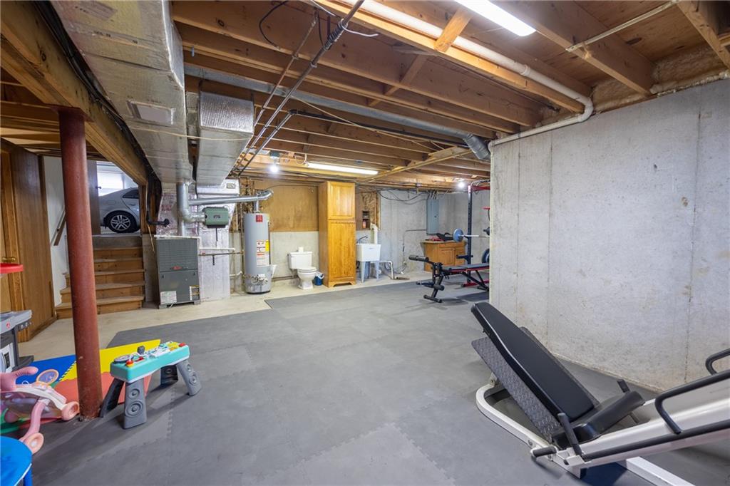Beautifully maintained split-level with a layout that just makes sense. The main living space features vaulted ceilings with an exposed beam, a fireplace, and great natural light that makes the whole area feel open and inviting. The kitchen and bathrooms have been thoughtfully updated, giving the home a fresh, move-in ready feel. The primary bedroom includes a walk-in closet and its own private bathroom. You’ll also find an oversized 2-car garage, plus additional lower-level space for storage, a workout area, or a second living space. The backyard is fully fenced with a deck and shed, offering a great setup for everyday living or entertaining. The peach trees and lilies really shine in the spring and summer.