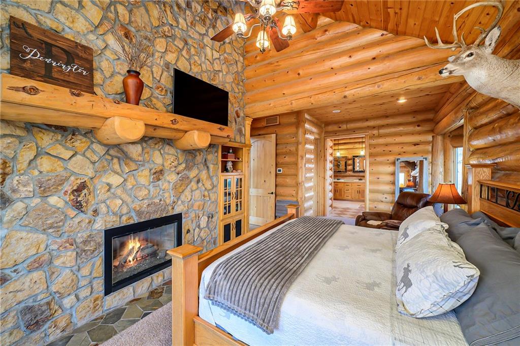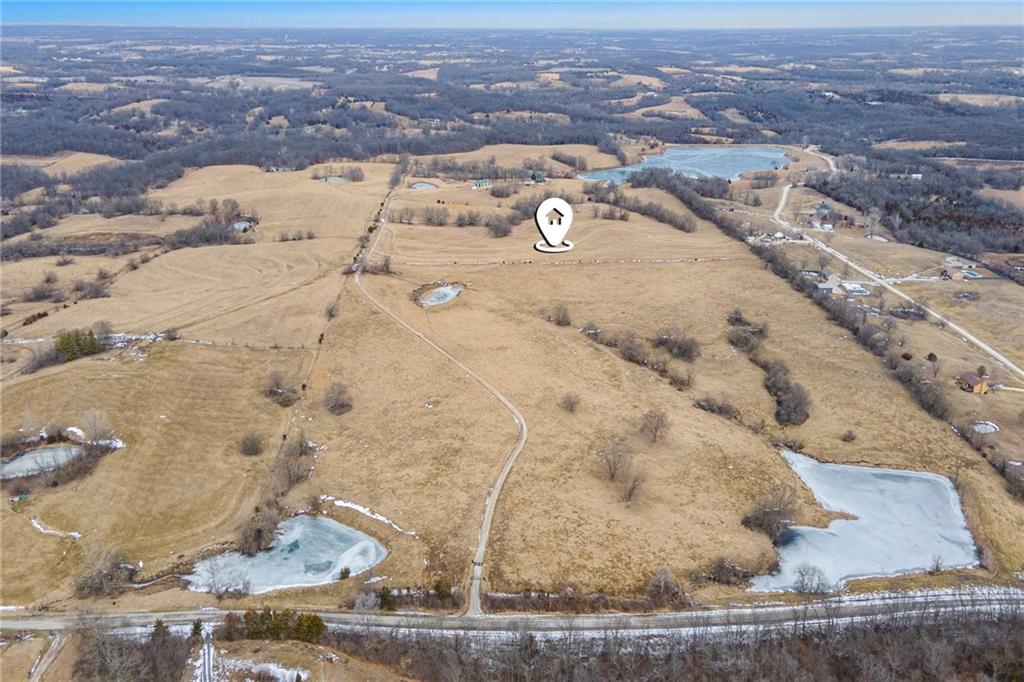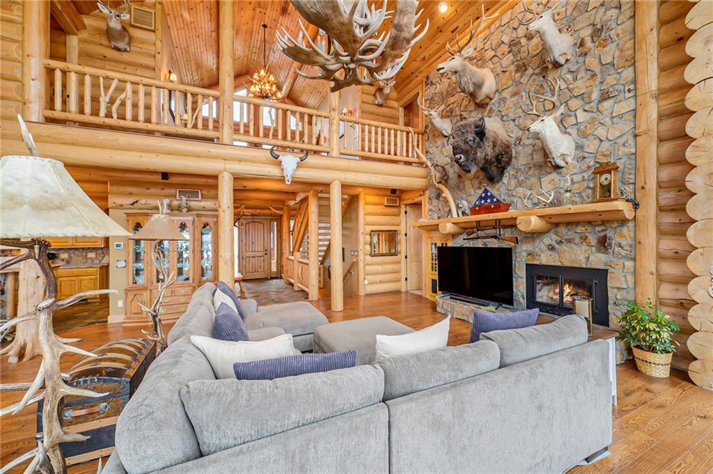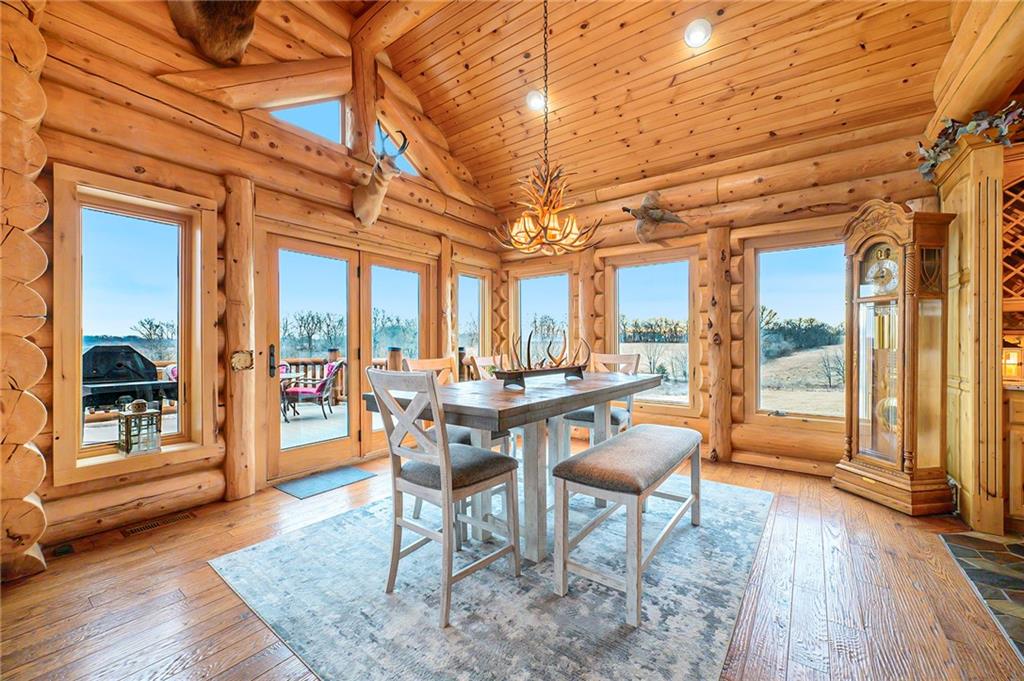 STUNNING CUSTOM LOG HOME located on 67+/- acres FULLY FENCED & cross fenced featuring a GORGEOUS LAKE!! 40x98 OUTBUILDING & lean to w/solar panels. PASTURE GROUND for your LIVESTOCK & HAY PRODUCTION along with timber. This RURAL RETREAT offers loads of RECREATIONAL OPPORTUNITIES for you and your family! The 4 bedroom 4.5 bath home offers an OPEN PLAN perfect for entertaining! CHEF'S KITCHEN features HUGE ISLAND, granite tops, CUSTOM CABINETS w/roll outs, pantry, dining space & more! SOARING CEILINGS & so many windows to take in the VIEWS! Main level primary suite w/SITTING ROOM & BEAUTIFUL STONE FIREPLACE! Don't miss the spacious laundry and mud room space for convenience. The upper level has 2 SECONDARY BEDROOMS with their own PRIVATE BATHS, walk in closets and balconies. The LOFT SPACE overlooks the EXQUISITE GREAT ROOM, STONE FIREPLACE and WALL OF WINDOWS! Finished walk out LL has the 4th bedroom & full bath, 16x8 SAFE ROOM, bonus room, REC ROOM W/3RD stone fireplace and WET BAR and 2 storage spaces. RELAX and watch the SUNSETS & WILDLIFE from the low maintenance deck overlooking the SALT WATER IN GROUND POOL & LAKE! This is a ONE OF A KIND meticulously maintained property 30 minutes from Kansas City. Square footage, acreage, schools, taxes, etc are approximate...buyer and buyer's agent to verify