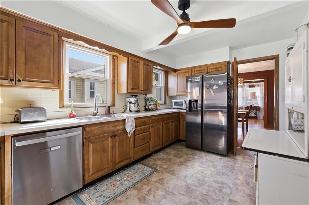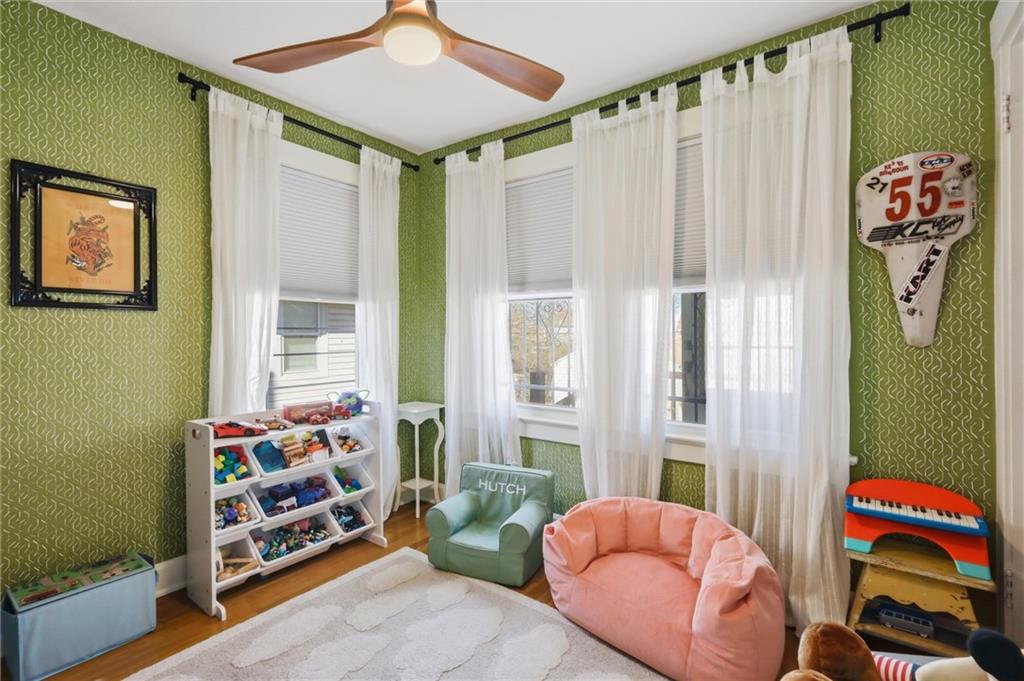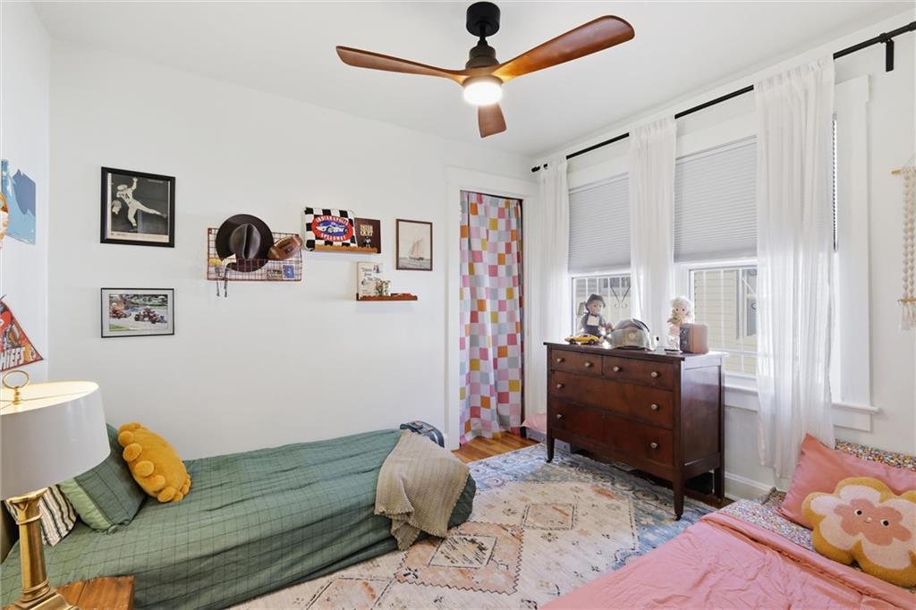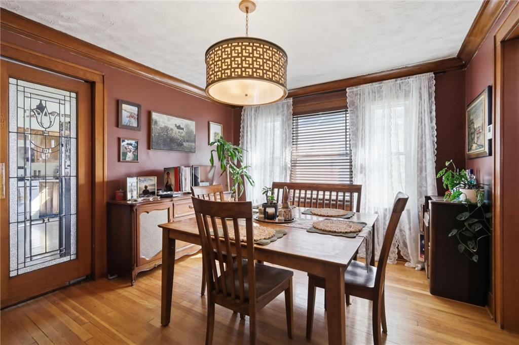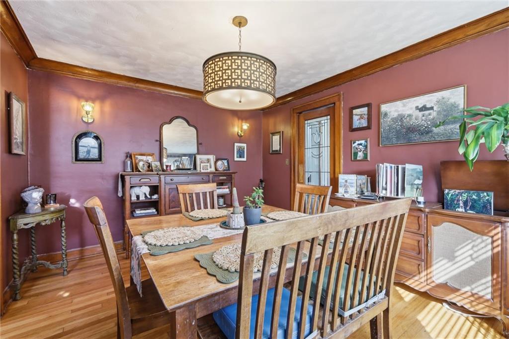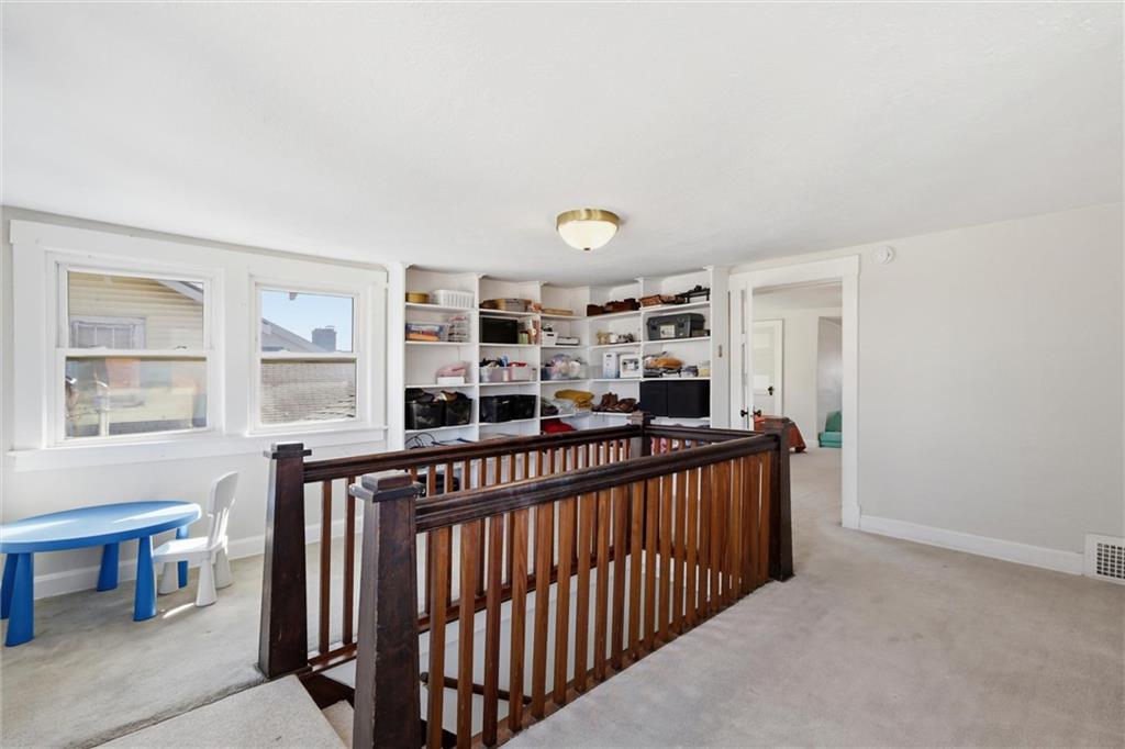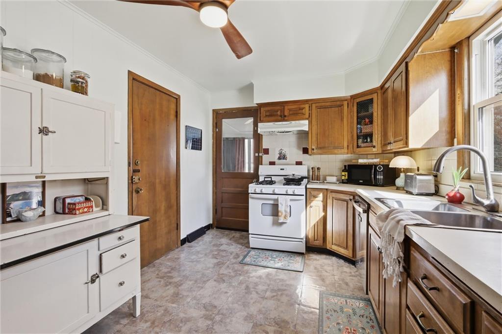 This charming 3-bedroom, 1.5-bath home is full of warmth, character, and the kind of original detail that is getting harder and harder to find. From the moment you step inside, you’re welcomed by beautiful original hardwood floors, rich unpainted trim and moldings in the front of the home, and a sense of craftsmanship that simply cannot be replicated. The dining and front living spaces showcase stunning original woodwork, original doors, and gorgeous wood blinds that perfectly complement the home’s timeless personality. The marble fireplace creates a beautiful focal point, while the original windows above the mantle add even more historic charm. In the bedrooms, original trim has been thoughtfully preserved and painted, blending character with a fresh, livable feel. Privacy and blackout blinds in all bedrooms offer comfort and function. The kitchen is a true nod to the home’s history, featuring custom-built cabinetry from the 1960s, an original swinging kitchen door, and a layout that feels both nostalgic and practical. The remodeled bathroom was carefully designed to honor the home’s era, giving it a period-appropriate feel with updated livability. Downstairs, new ceiling fans add comfort, and the full basement offers valuable extra space for storage, hobbies, or future possibilities. Upstairs, the home continues to impress with a functional landing area complete with shelving, creating a useful flex space for books, storage, a reading nook, or a small work area. The upstairs bedroom is extra large and offers incredible versatility, with plenty of room to create a spacious primary retreat, sitting area, office nook, or other customized use to fit your lifestyle. This is a home with soul — lovingly maintained, full of story, and ready for its next chapter.