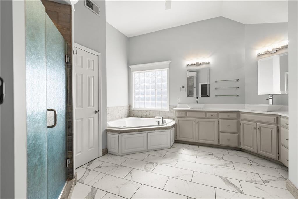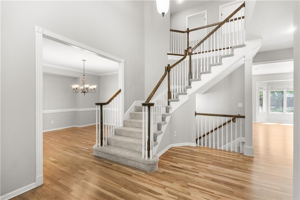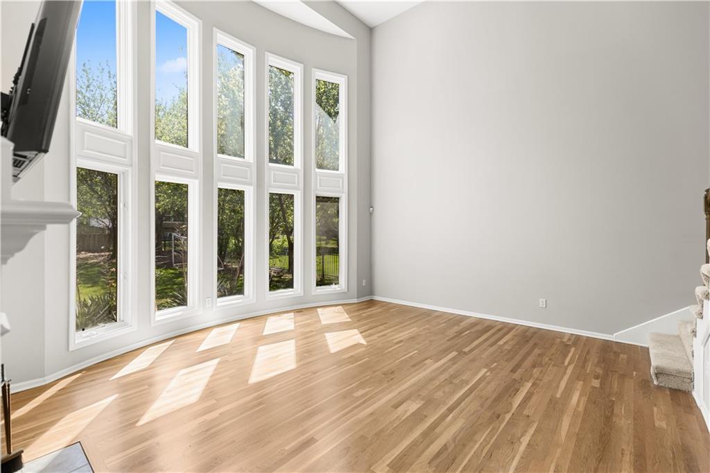 LOCATION! LOCATION! LOCATION! NEW INTERIOR PAINT, NEW CARPETS AND NEWLY FINISHED WOOD FLOORS! Welcome to this beautifully updated home in the highly sought-after Overland Park area, offering the perfect blend of comfort, style, and modern upgrades. Nestled on a quiet street, this spacious residence features an inviting open floor plan designed for both everyday living and effortless entertaining. Step inside to a stunning remodeled kitchen that is truly a cook’s delight—featuring an abundance of cabinetry, quartz countertops, a stylish tile backsplash, stainless steel appliances, and a show-stopping oversized quartz island. The kitchen opens to a generous dining and hearth area, creating the perfect gathering space, and flows seamlessly out to a large patio overlooking a beautiful, level backyard. The main level showcases newly refinished hardwood floors throughout, enhancing the home’s warmth and elegance. A spacious great room impresses with soaring ceilings, a see-through fireplace, and dramatic all-new floor-to-ceiling windows that flood the space with natural light. The inviting two-story entry is flanked by a formal dining room and a versatile den or home office. The main floor also has a full bathroom with shower. Upstairs, the expansive primary suite offers plenty of room for a sitting area, along with a walk-in closet and a beautifully updated en-suite bathroom. Three additional oversized bedrooms provide ample space—one featuring its own private updated bath, while the other two share a convenient Jack-and-Jill updated bathroom. The finished daylight lower level expands your living space with a full bathroom and offers plenty of unfinished area ideal for storage or a workshop. With its thoughtful updates, spacious layout, and prime location near top-rated schools, parks, shopping, and dining, this home truly has it all. Don’t miss your chance to make it yours!