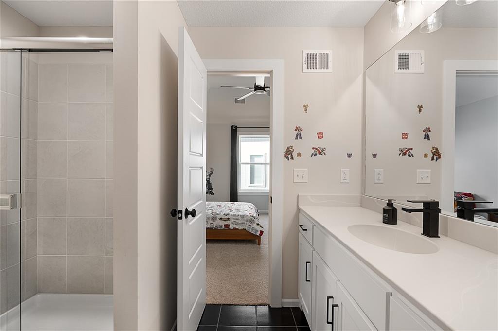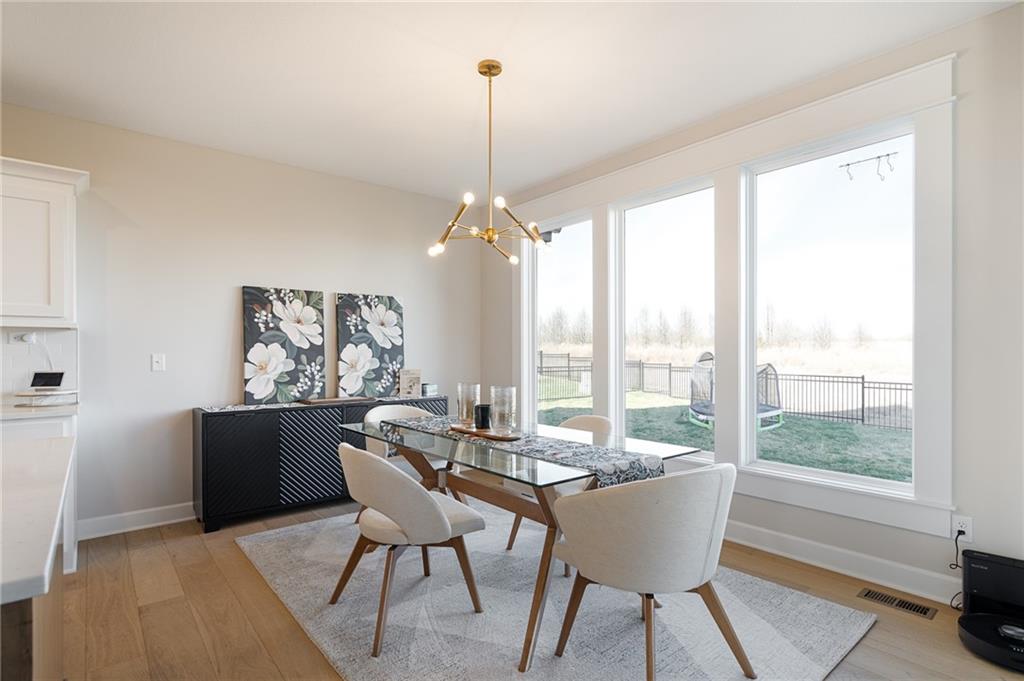 Stunning Award-Winning 1.5-Story will back to the future Blue Valley elementary school. This floor plan is designed for luxury and functionality. Thoughtful details include wood end caps, iron spindles, and vaulted ceilings, creating an elegant and spacious feel. The see-through fireplace seamlessly connects the great room to the covered patio, perfect for indoor-outdoor living. The center-island kitchen shines with painted cabinetry, offering both style and practicality. The main-level owner’s suite is a true retreat, featuring an oversized closet and a spa-like walk-in shower with dual shower heads. The office located off the entry provides the perfect work-from-home or study space. Tesla charger installed in garage stays with the home. Sundance Ridge’s premier amenities are now open! Enjoy a state-of-the-art fitness center, a resort-style pool, and scenic nature trails. Planned future amenities include a full gymnasium, pickleball and bocce ball courts, a playground, and a community garden. Clubhouse & first pool now open! Don’t wait—schedule your tour today!